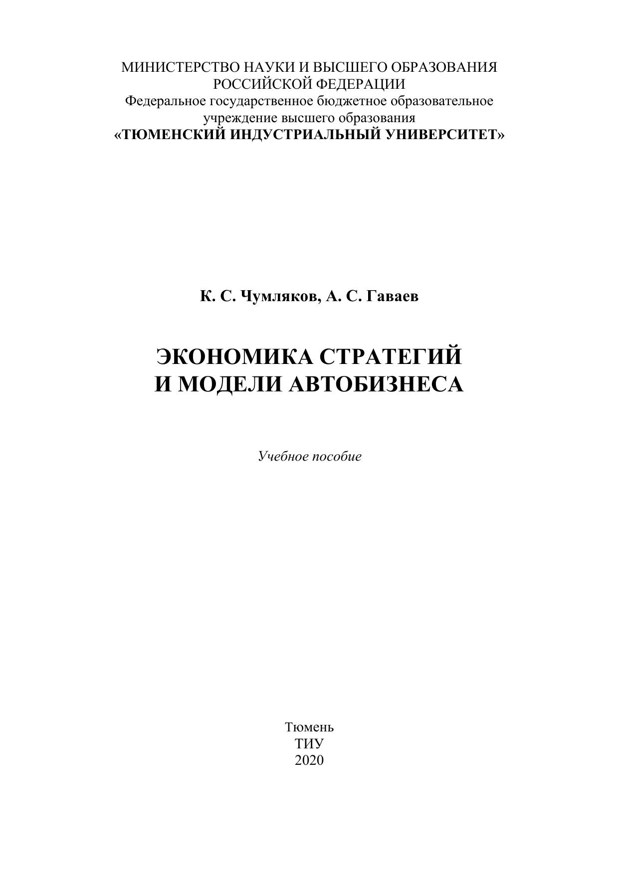 Экономика стратегий и модели автобизнеса