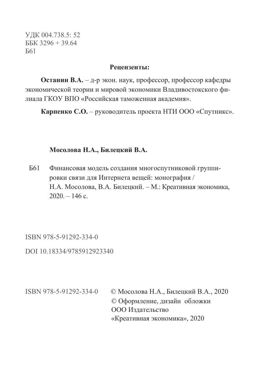 Финансовая модель создания многоспутниковой группировки связи для интернета вещей