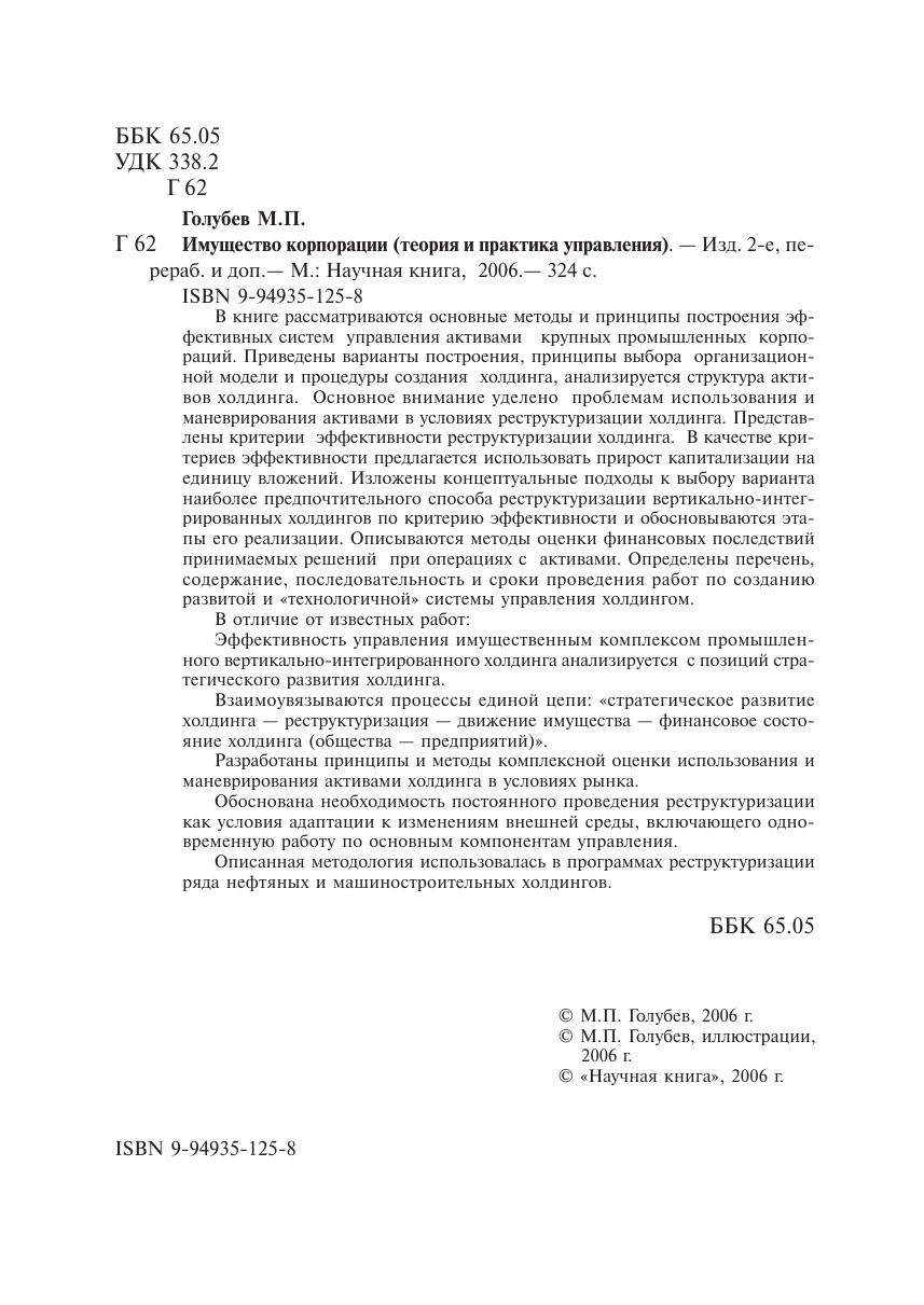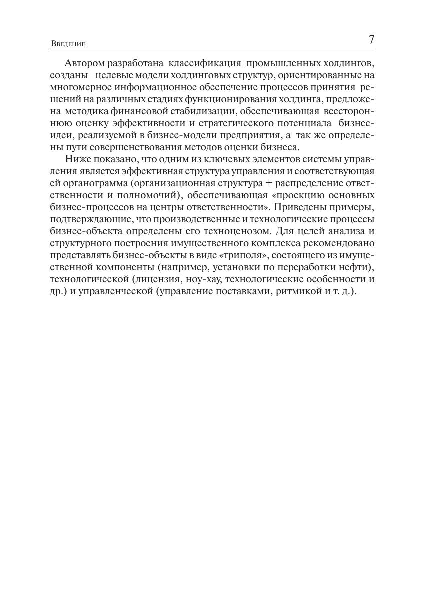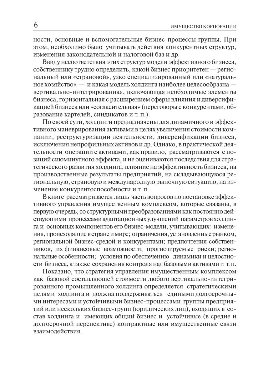 В книге рассматриваются основные методы и принципы построения эффективных систем управления активами крупных промышленных корпораций. Приведены варианты построения, принципы выбора организационной модели и процедуры создания холдинга, анализируется структура активов холдинга. Основное внимание уделено проблемам использования и маневрирования активами в условиях реструктуризации холдинга. Представлены критерии эффективности реструктуризации холдинга. В качестве критериев эффективности предлагается использовать прирост капитализации на единицу вложений. Изложены концептуальные подходы к выбору варианта наиболее предпочтительного способа реструктуризации вертикально-интегрированных холдингов по критерию эффективности и обосновываются этапы его реализации. Описываются методы оценки финансовых последствий принимаемых решений при операциях с активами. Определены перечень, содержание, последовательность и сроки проведения работ по созданию развитой и «технологичной» системы управления холдингом. В отличие от известных работ: Эффективность управления имущественным комплексом промышленного вертикально-интегрированного холдинга анализируется с позиций стратегического развития холдинга. Взаимоувязываются процессы единой цепи: «стратегическое развитие холдинга — реструктуризация — движение имущества — финансовое состояние холдинга (общества — предприятий)». Разработаны принципы и методы комплексной оценки использования и маневрирования активами холдинга в условиях рынка. Обоснована необходимость постоянного проведения реструктуризации как условия адаптации к изменениям внешней среды, включающего одновременную работу по основным компонентам управления. Описанная методология использовалась в программах реструктуризации ряда нефтяных и машиностроительных холдингов.