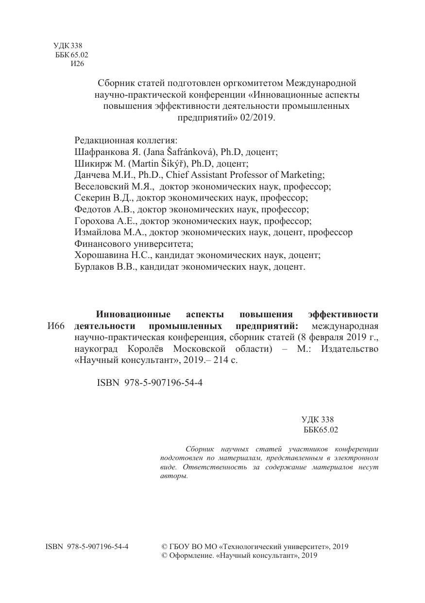 Международная научно-практическая конференция. Королев 8 февраля 2019. Сборник статей