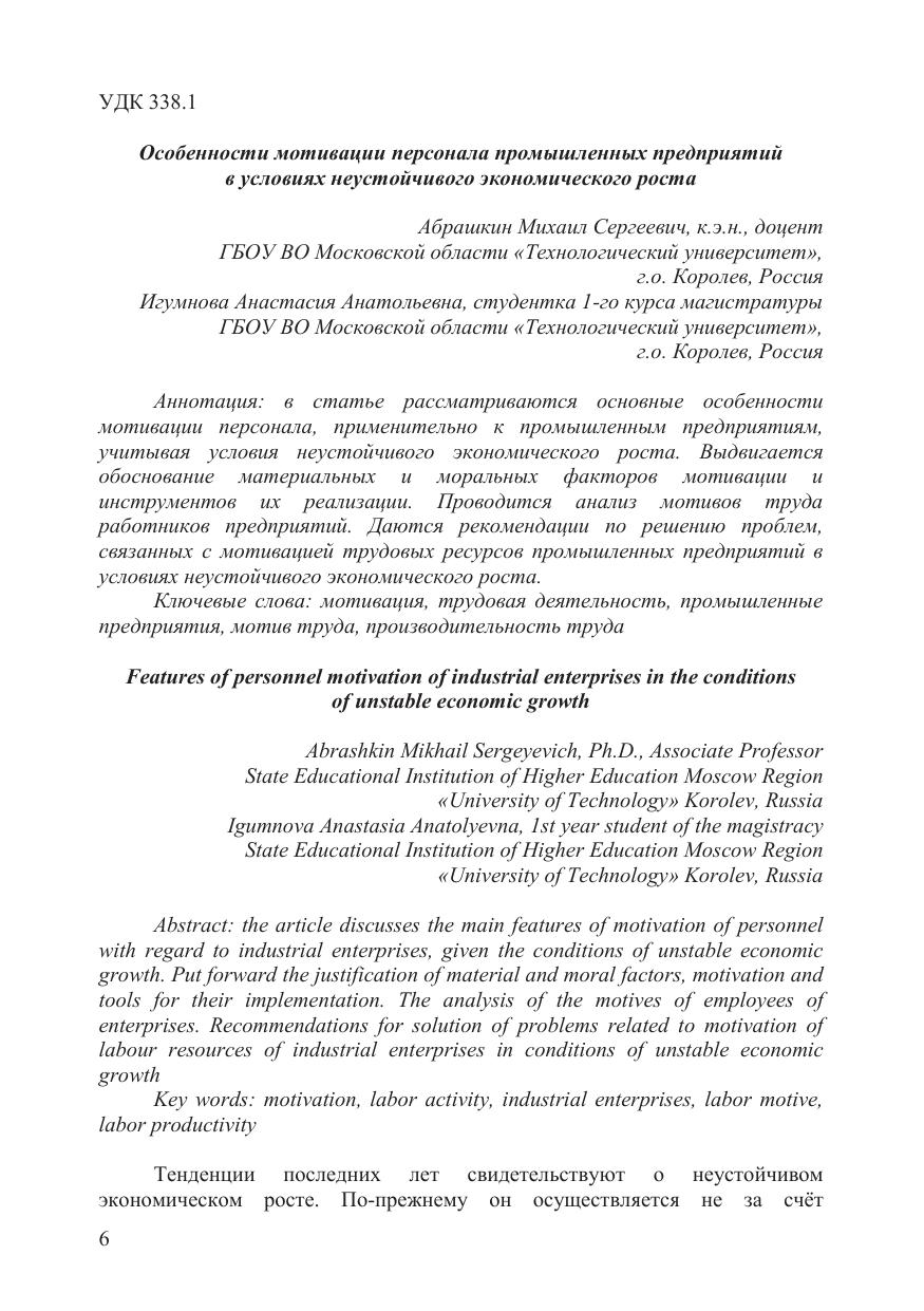 Инновационные аспекты повышения эффективности деятельности промышленных предприятий