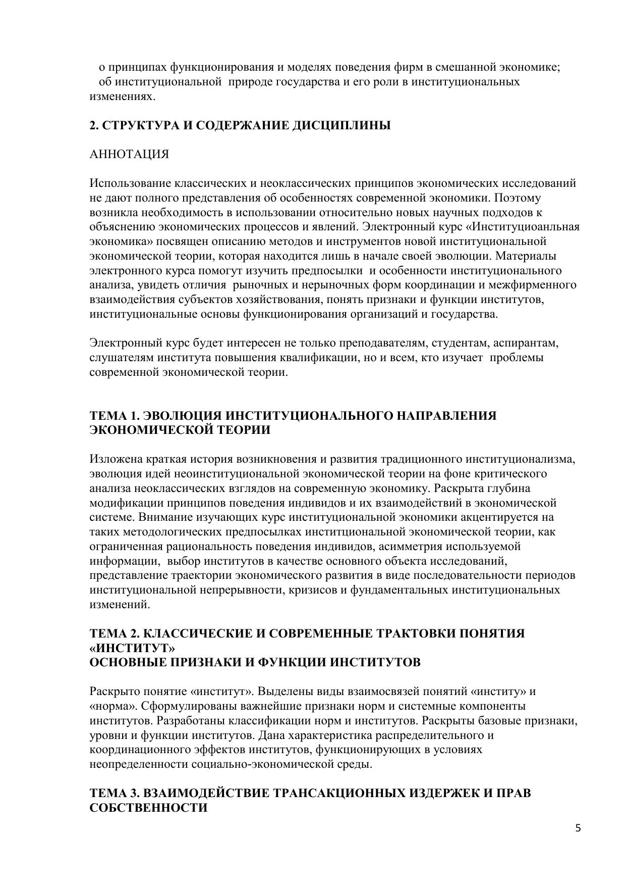 Использование классических и неоклассических принципов экономических исследований не дают полного представления об особенностях современной экономики. Поэтому возникла необходимость в использовании относительно новых научных подходов к объяснению экономических процессов и явлений. Электронный курс «Институциональная экономика» посвящен описанию методов и инструментов новой институциональной экономической теории, которая находится лишь в начале своей эволюции. Материалы электронного курса помогут изучить предпосылки и особенности институционального анализа, увидеть отличия рыночных и нерыночных форм координации и межфирменного взаимодействия субъектов хозяйствования, понять признаки и функции институтов, институциональные основы функционирования организаций и государства. Курс предназначен для преподавателей, студентов, аспирантов, слушателей института повышения квалификации, всем, кто изучает проблемы современной экономической теории. Электронное учебное пособие для дистанционного обучения