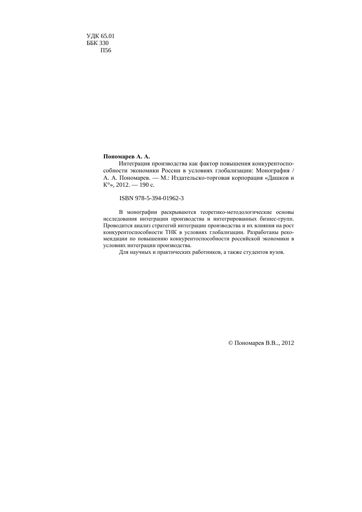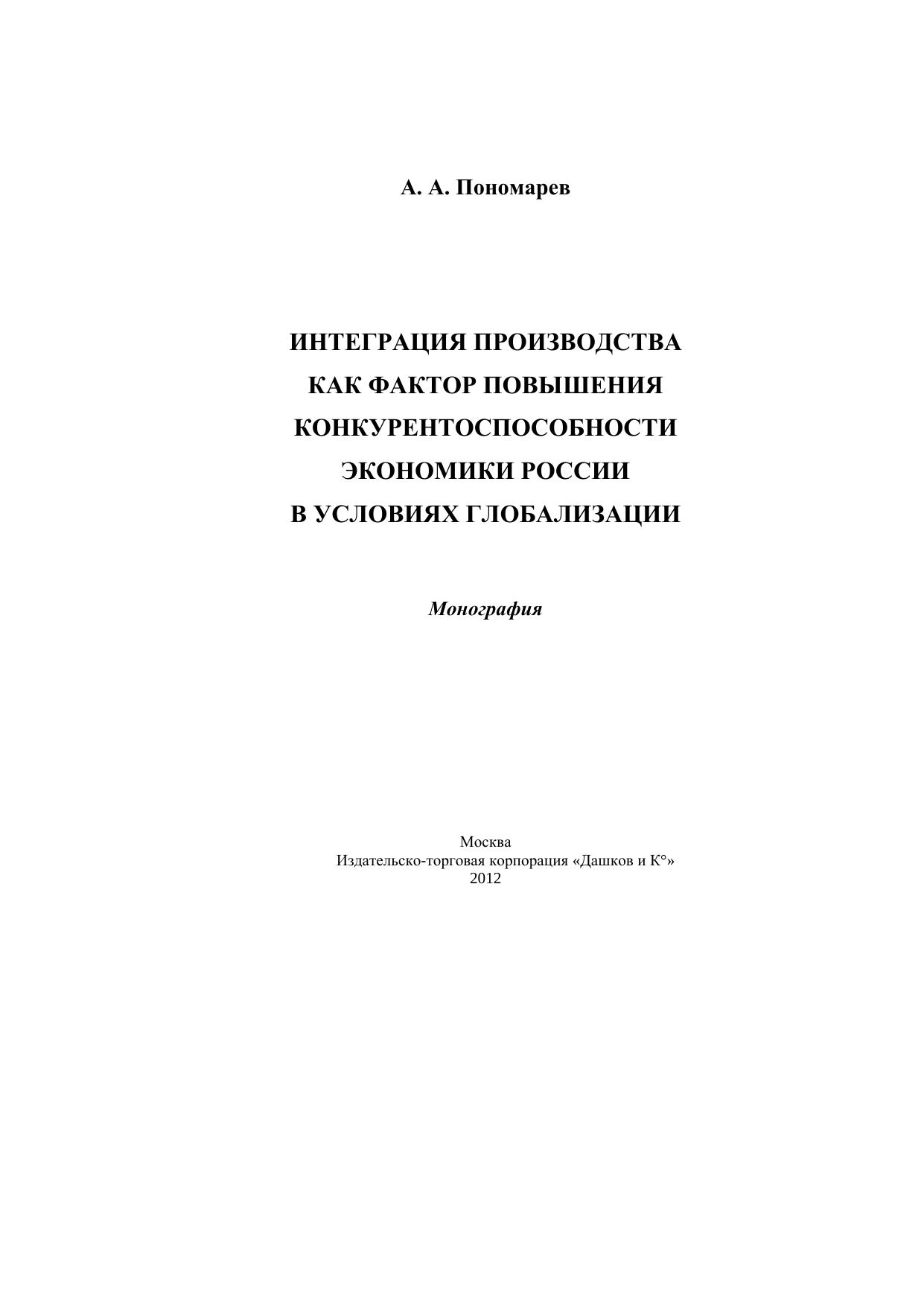 Интеграция производства как фактор повышения конкурентоспособности экономики России в условиях глобализации: Монография