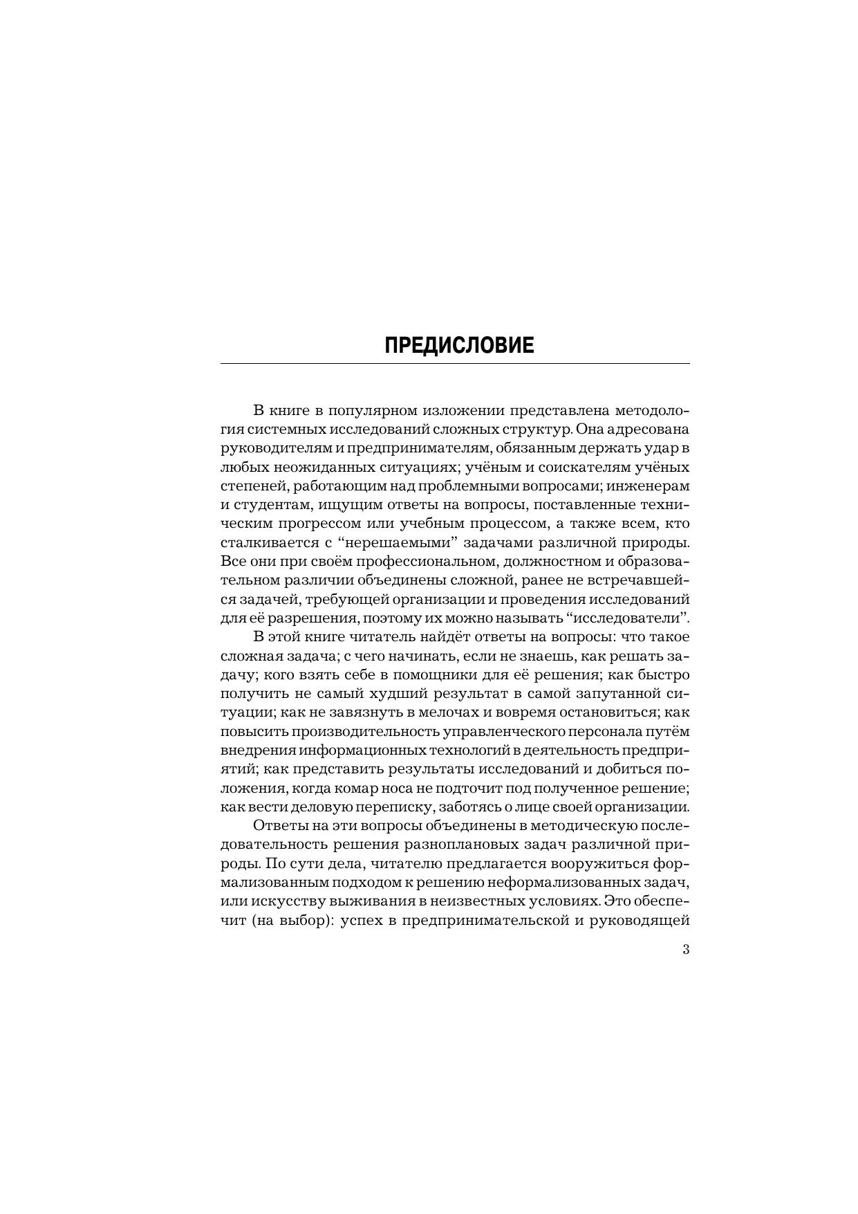 В книге в популярном изложении представлена методология системных исследований сложных структур. Она адресована руководителям и предпринимателям, обязанным держать удар в любых неожиданных ситуациях учёным и соискателям учёных степеней, работающим над проблемными вопросами инженерам и студентам, ищущим ответы на вопросы, поставленные техническим прогрессом или учебным процессом, а также всем, кто сталкивается с «нерешаемыми» задачами различной природы.