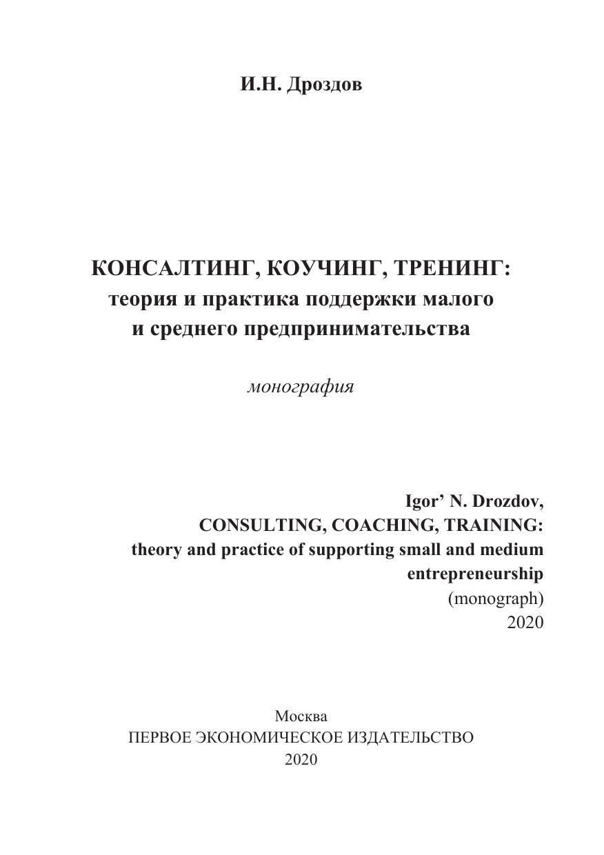 КОНСАЛТИНГ, КОУЧИНГ, ТРЕНИНГ: теория и практика поддержки малого и среднего предпринимательства