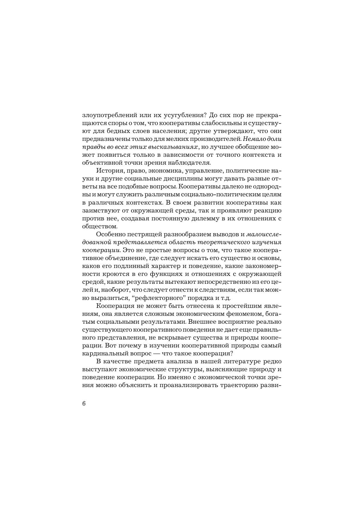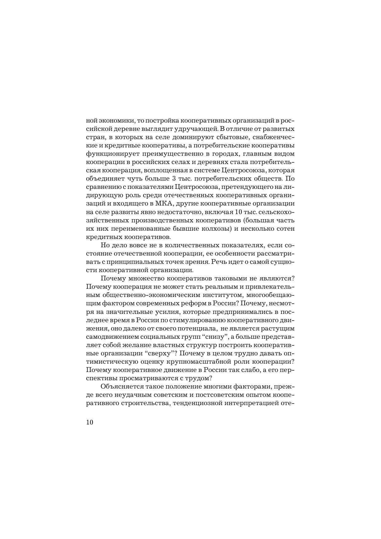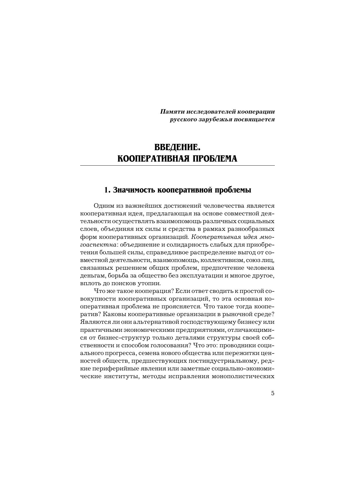 На основе анализа концепций развития кооперативной мысли русского зарубежья раскрываются подходы к интерпретациям кооперативных организаций, дающие возможность научного объяснения сущности кооперации, ее роли и места в социально-экономическом развитии. Рассмотрение кооперации как экономической формы, анализ ее поведения в разных условиях раскрывают ее природу, позволяют уяснить, как работают современные кооперативы в их многообразии и внутренней сложности.