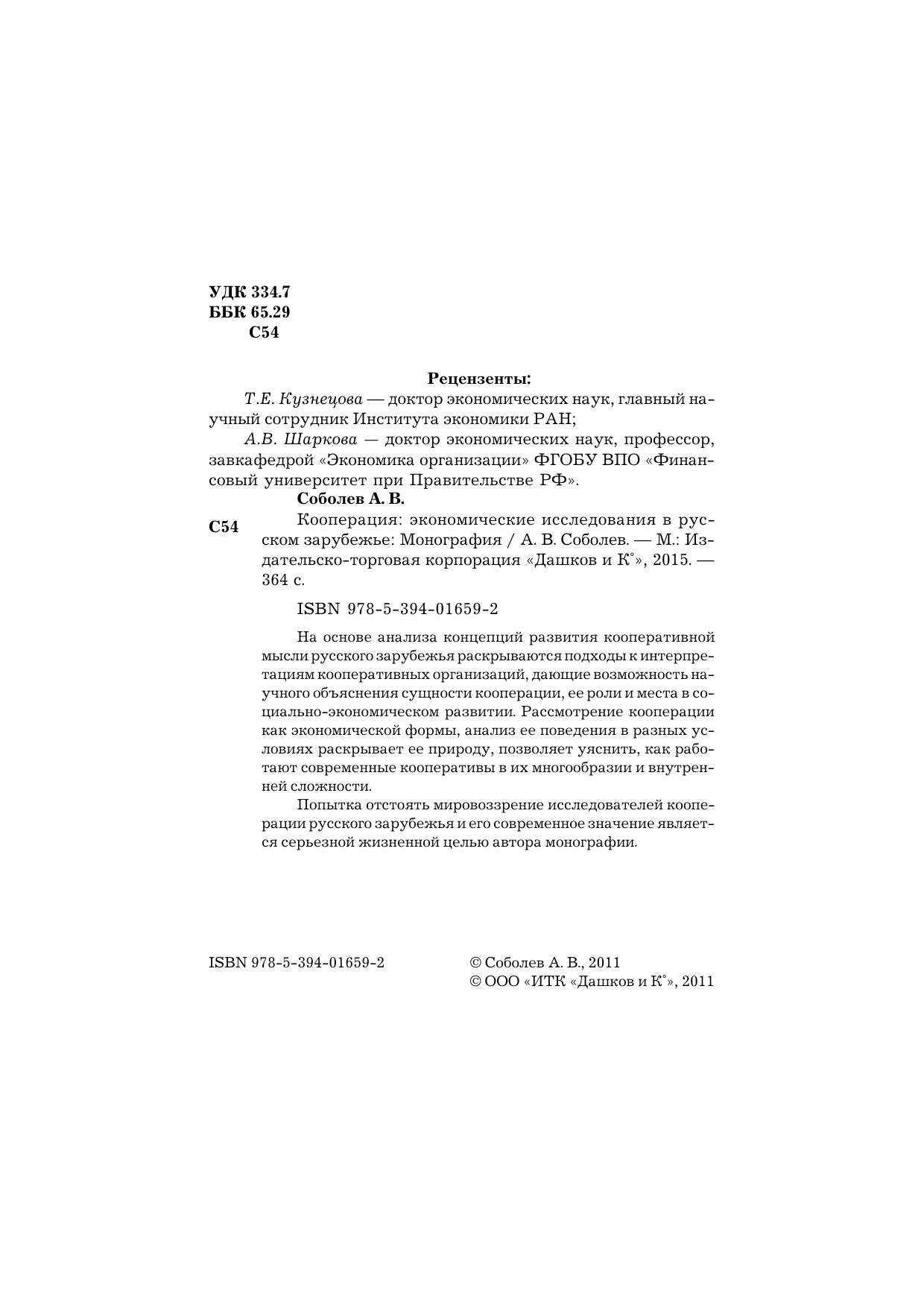 Попытка отстоять мировоззрение исследователей кооперации русского зарубежья и его современное значение является серьезной жизненной целью автора монографии.