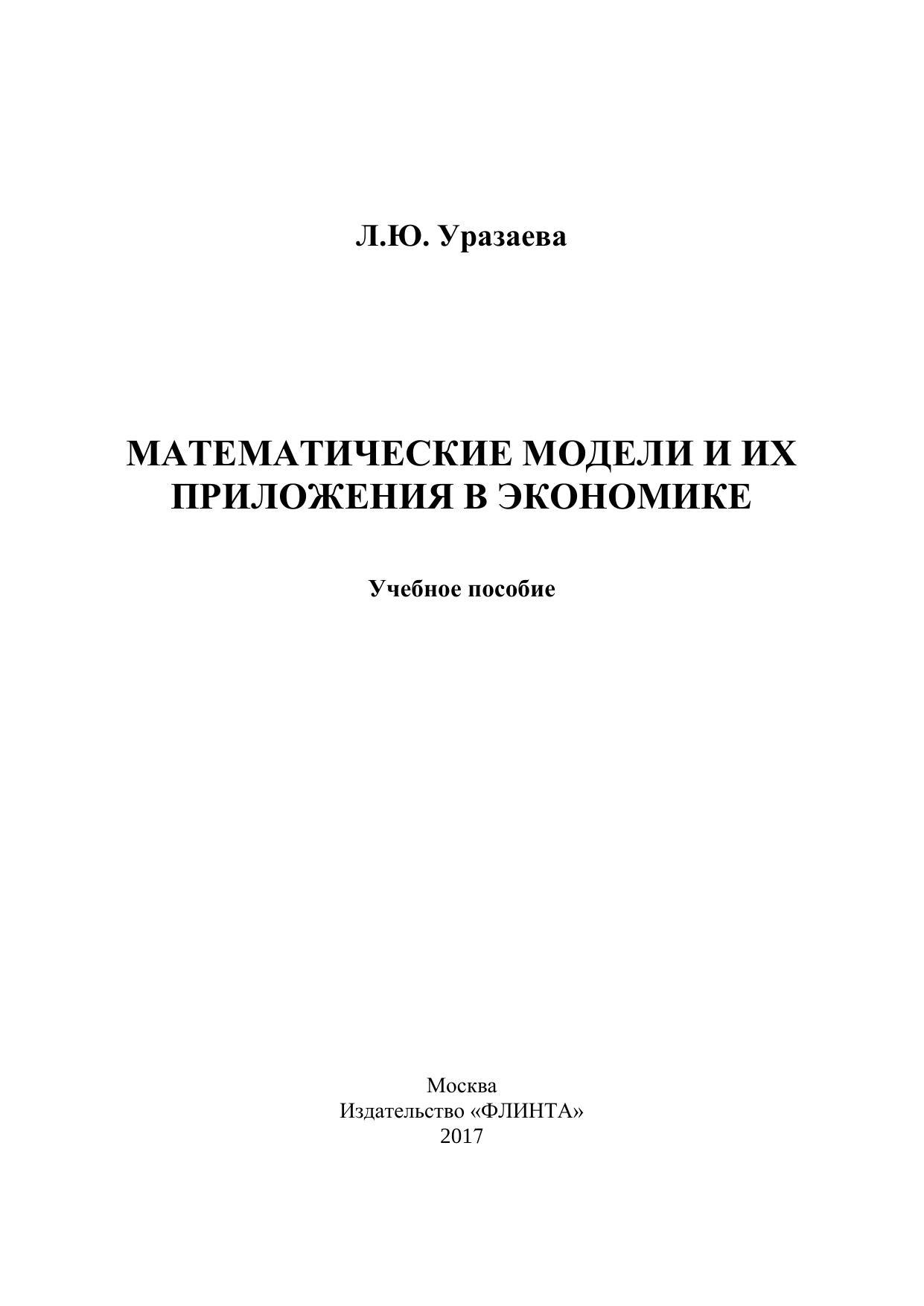 Математические модели и их приложения в экономике: учебное пособие