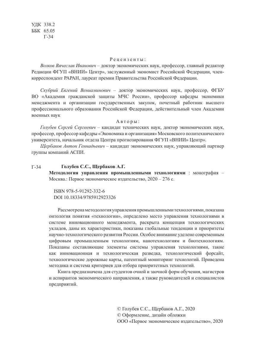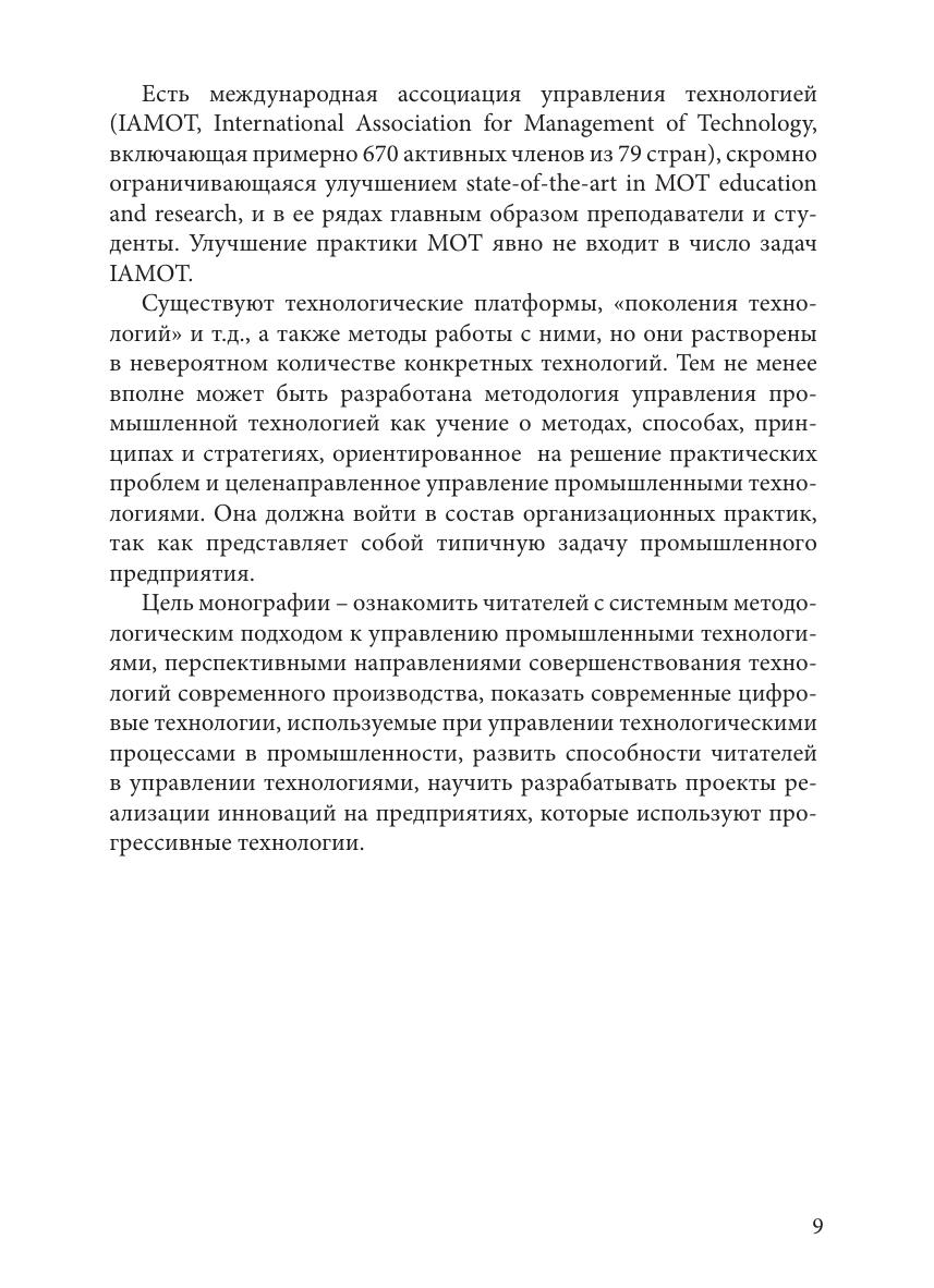 Рассмотрена методология управления промышленными технологиями, показана онтология понятия технологии, определено место управления технологиями в системе инновационного менеджмента, раскрыта концепция технологических укладов, даны их характеристики, показаны глобальные тенденции и приоритеты научно-технологического развития России. Особое внимание уделено современным цифровым промышленным технологиям, нанотехнологиям и биотехнологиям. Показаны составляющие элементы системы управления технологиями, такие как инновационная и технологическая разведка, технологический форсайт, технологические дорожные карты, патентный мониторинг технологий. Приведена методика и система критериев для отбора приоритетных технологий. Книга предназначена для студентов очной и заочной фopм обучения, магистров и аспирантов экономического направления, а также руководителей и специалистов предприятий.