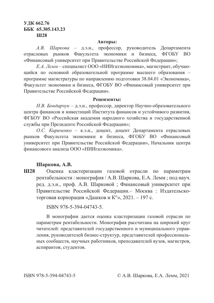 В монографии дается оценка кластеризации газовой отрасли по параметрам рентабельности. Монография рассчитана на широкий круг читателей: представителей государственного и муниципального управления, руководителей бизнес-структур, представителей профессиональных сообществ, научных работников, преподавателей вузов, магистров, аспирантов, студентов.