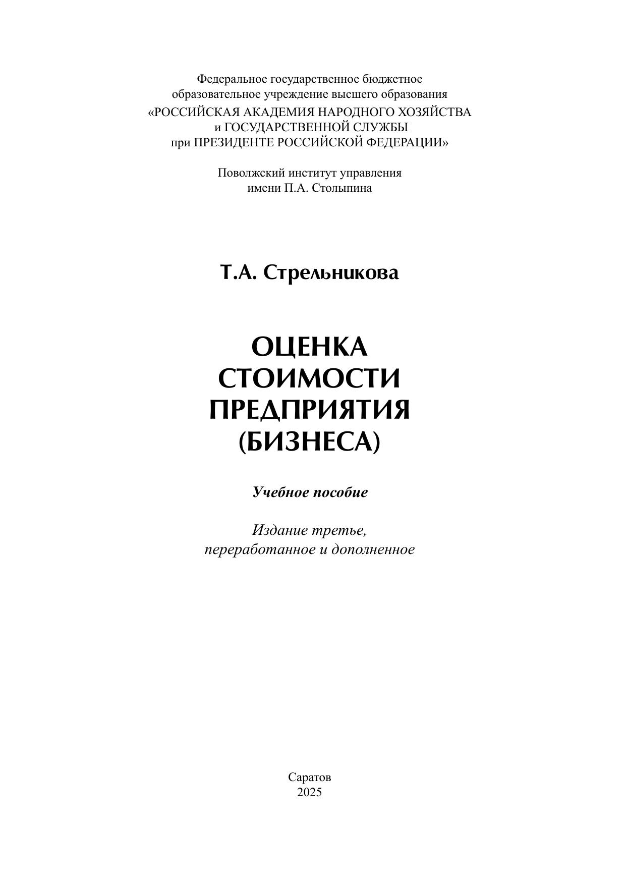 В учебном пособии раскрываются теоретические и методологические основы оценки стоимости предприятия (бизнеса). Проведен сравнительный анализ понятий «оценка стоимости предприятия» и «оценка стоимости бизнеса». Раскрыты цели, задачи, принципы и этапы оценки стоимости предприятия (бизнеса), изложена концепция стоимости денег во времени. Предлагается методика проведения комплексного анализа финансовой отчетности предприятия. Приводится алгоритм решения типовых