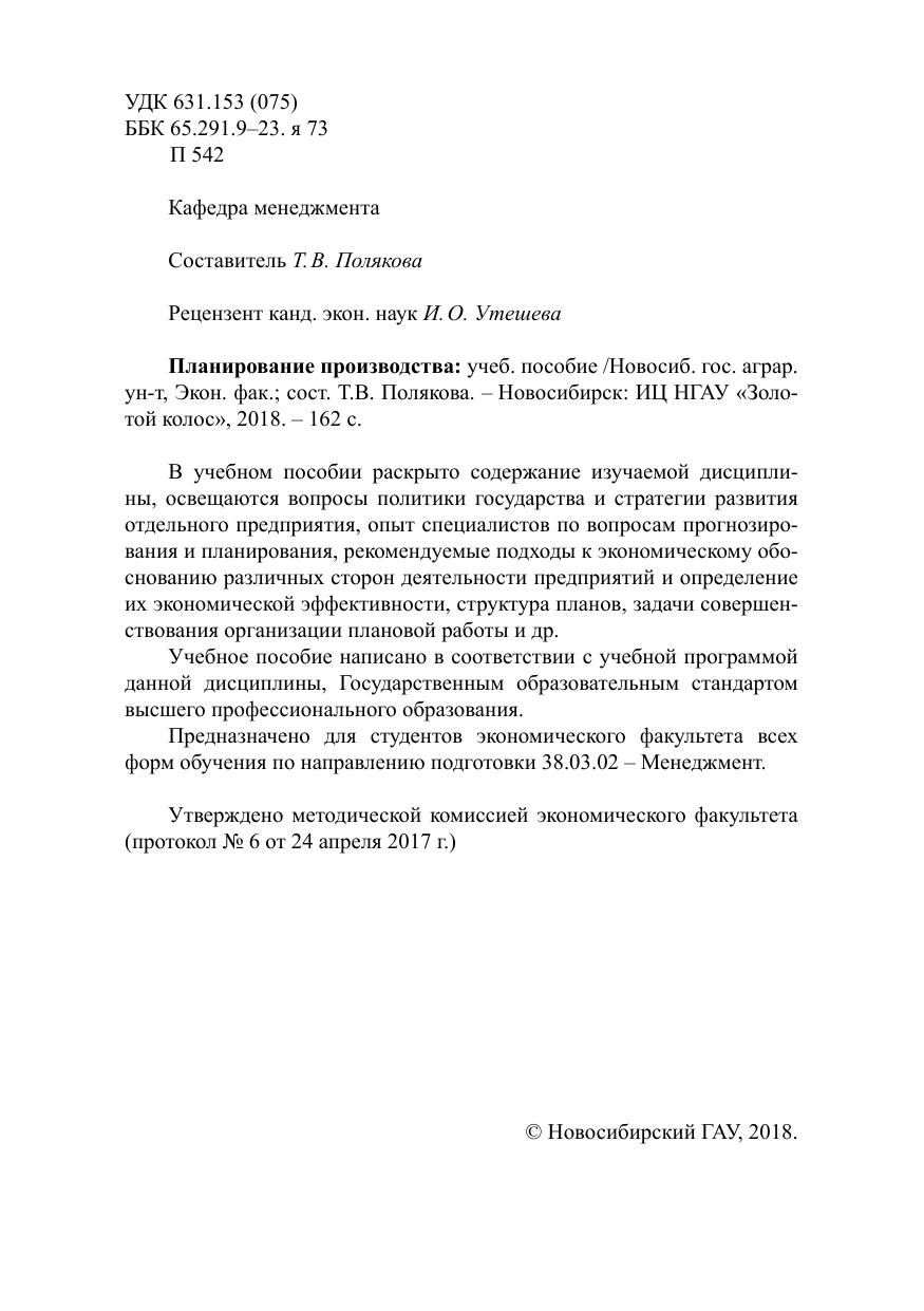 В учебном пособии раскрыто содержание изучаемой дисциплины, освещаются вопросы политики государства и стратегии развития отдельного предприятия, опыт специалистов по вопросам прогнозирования и планирования, рекомендуемые подходы к экономическому обоснованию различных сторон деятельности предприятий и определение их экономической эффективности, структура планов, задачи совершенствования организации плановой работы и др. Учебное пособие написано в соответствии с учебной программой данной дисциплины, Государственным образовательным стандартом высшего профессионального образования. Предназначено для студентов экономического факультета всех форм обучения по направлению подготовки 38.03.02 – Менеджмент. Утверждено методической комиссией экономического факультета (протокол № 6 от 24 апреля 2017 г.)