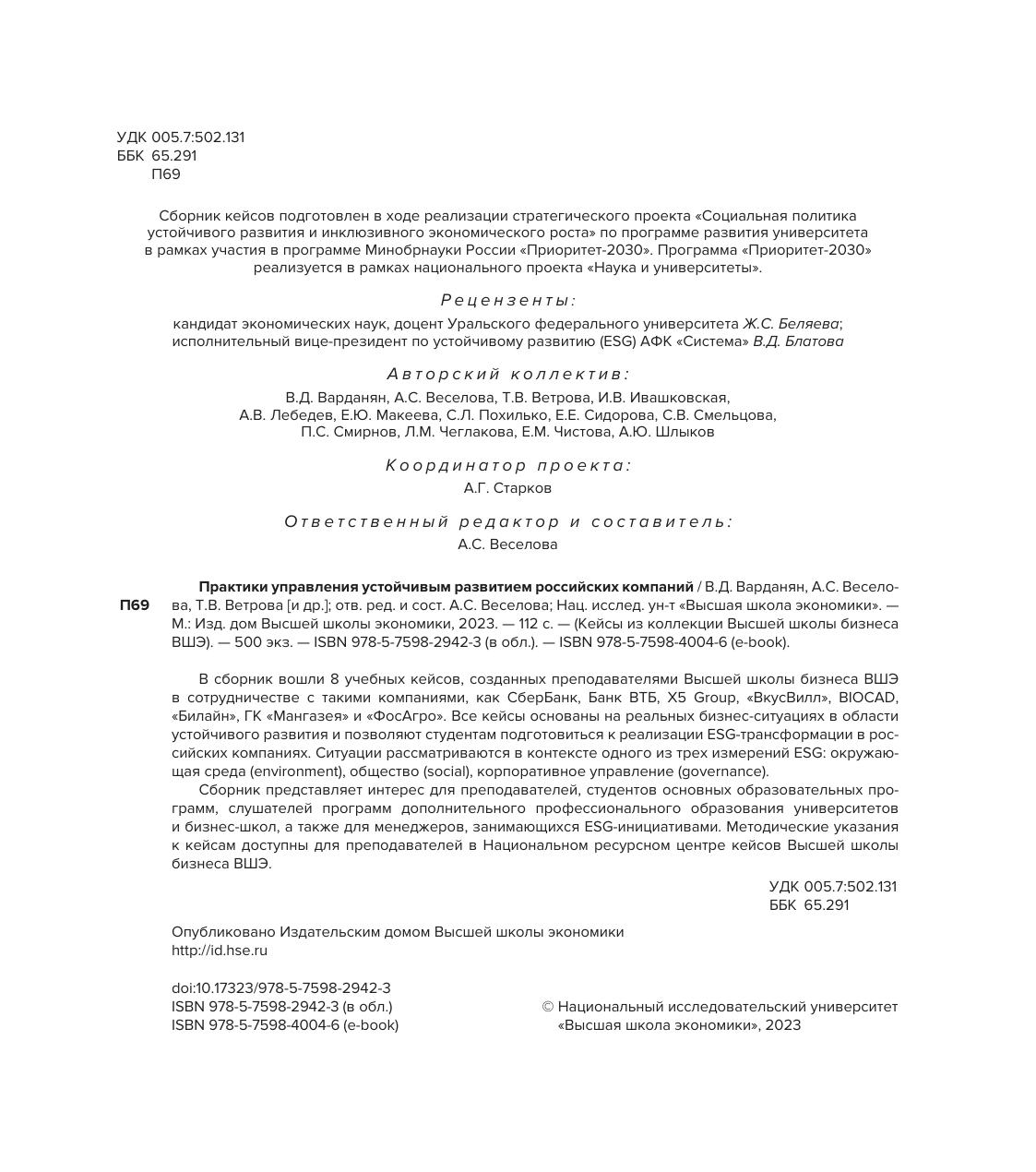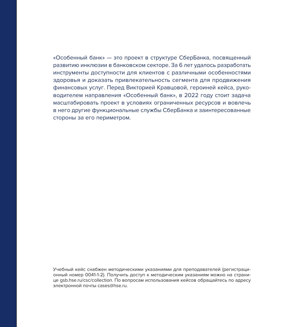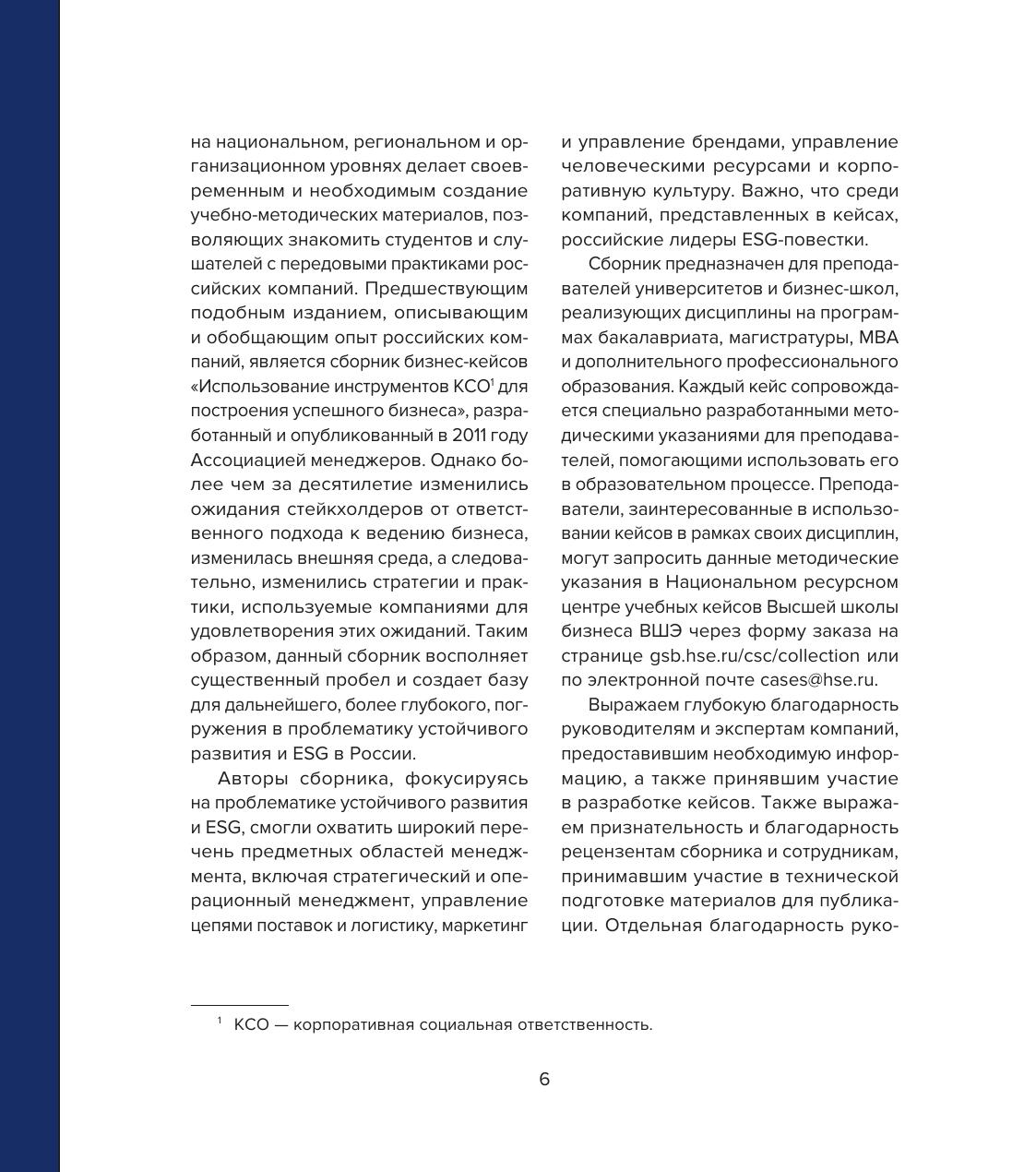 Сборник представляет интерес для преподавателей, студентов основных бразовательных программ, слушателей программ дополнительного профессионального образования университетов и бизнес-школ, а также для менеджеров, занимающихся ESG-инициативами. Методические указания к кейсам доступны для преподавателей в Национальном ресурсном центре кейсов Высшей школы бизнеса ВШЭ.