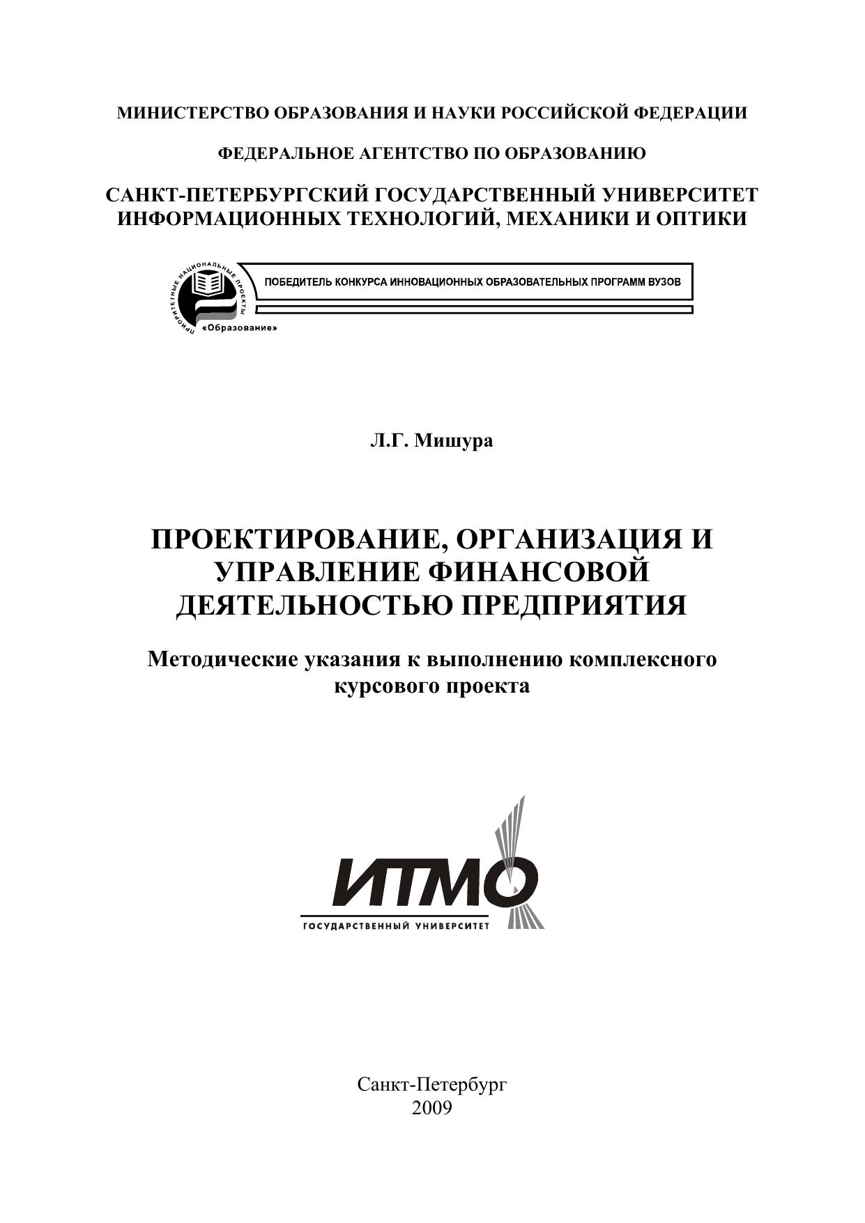 Проектирование, организация и управление финансовой деятельностью предприятия: Методические указания к выполнению комплексного курсового проекта