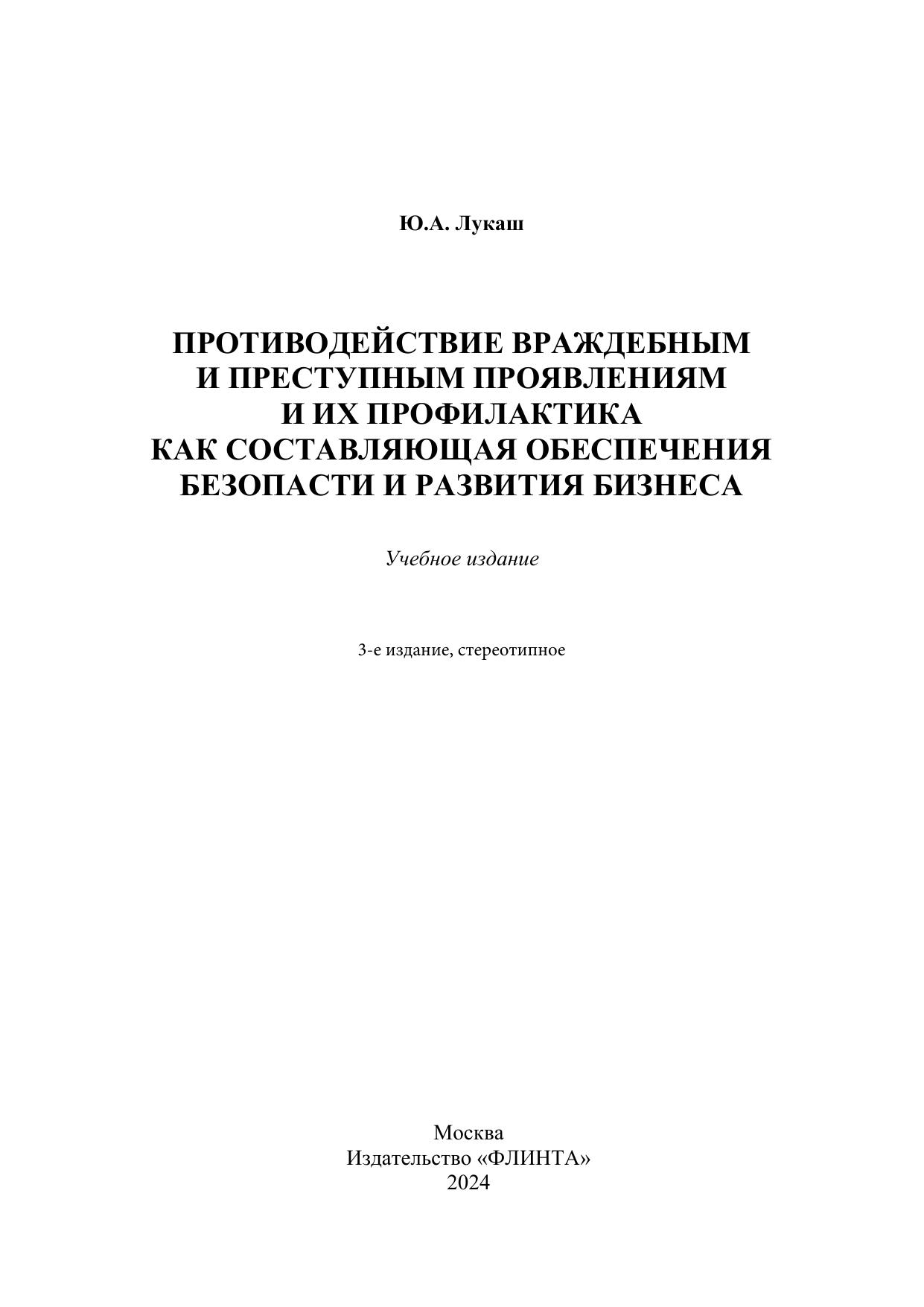 Противодействие враждебным и преступным проявлениям и их профилактика как составляющая обеспечения безопасности и развития бизнеса
