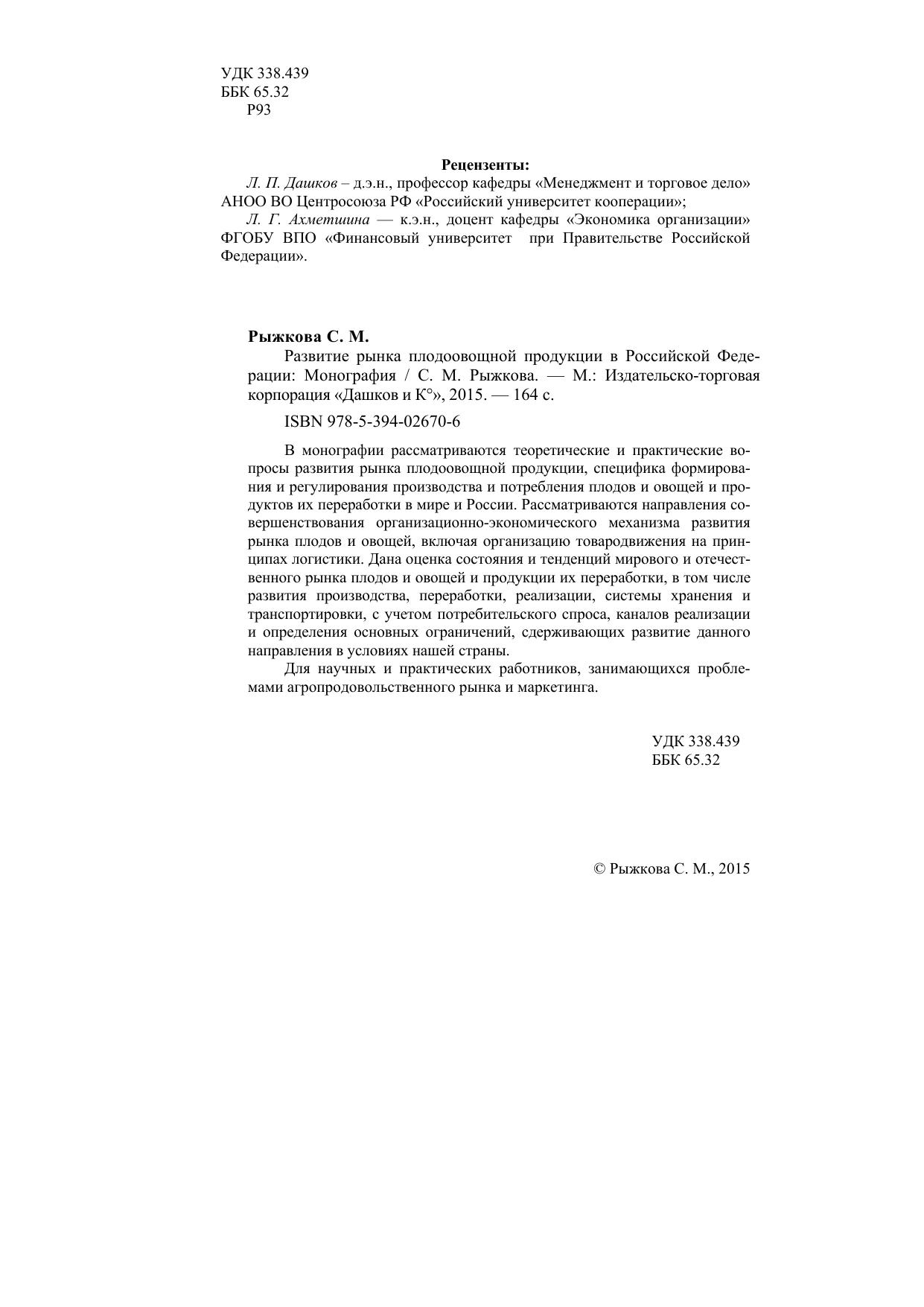 Развитие рынка плодоовощной продукции в Российской Федерации: монография