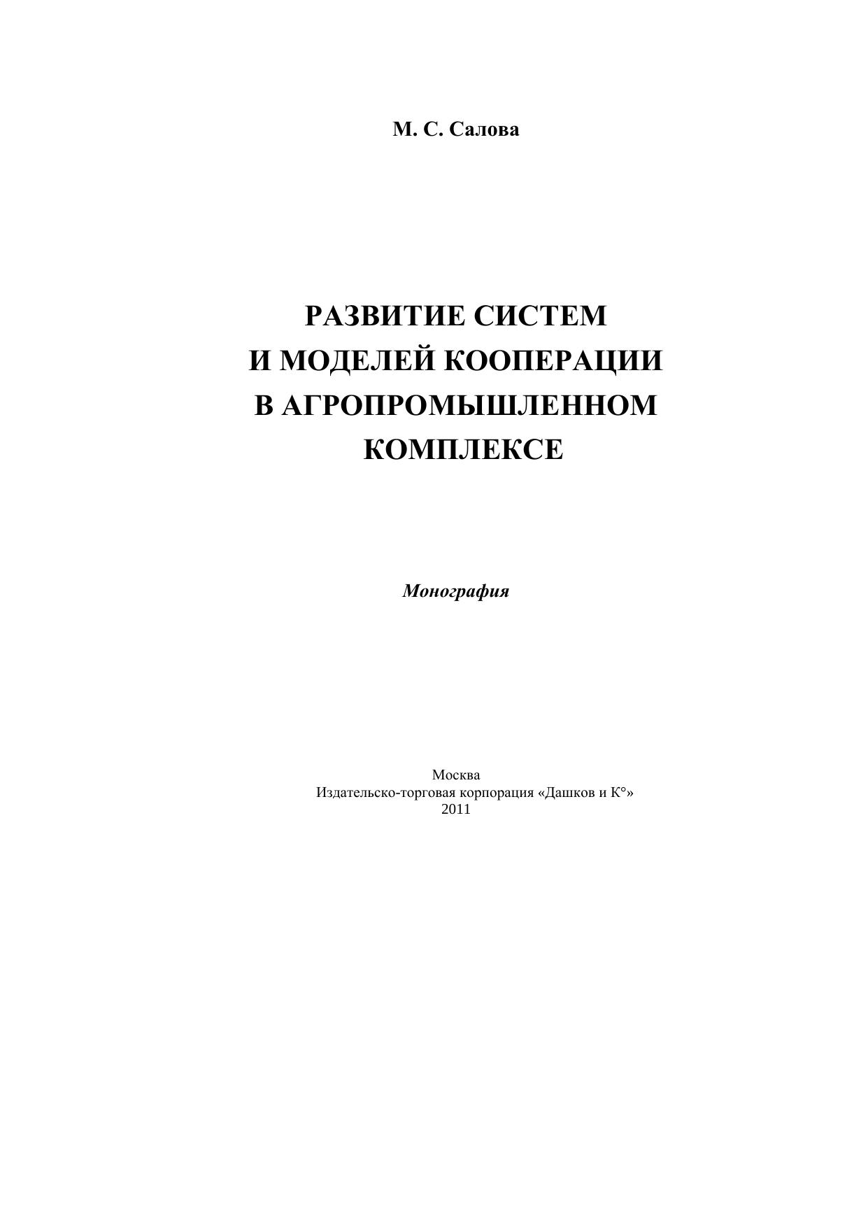 Развитие систем и моделей кооперации в агропромышленном комплексе: Монография