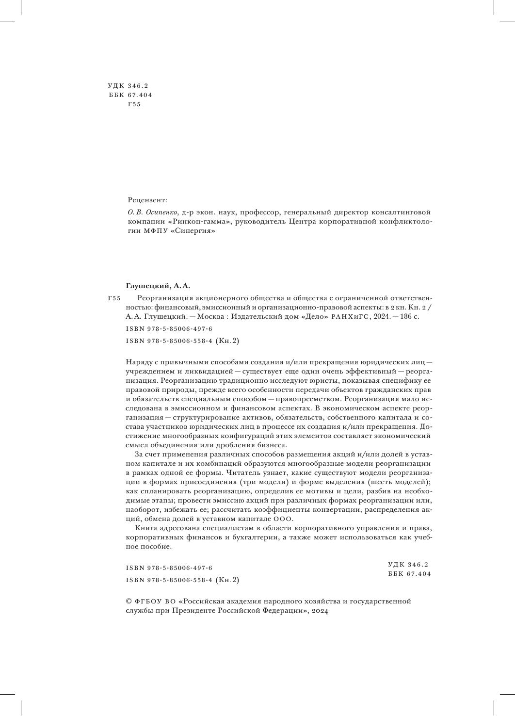 Реорганизация акционерного общества и общества с ограниченной ответственностью: финансовый, эмиссионный и организационно-правовой аспекты: в 2 кн. Кн. 2
