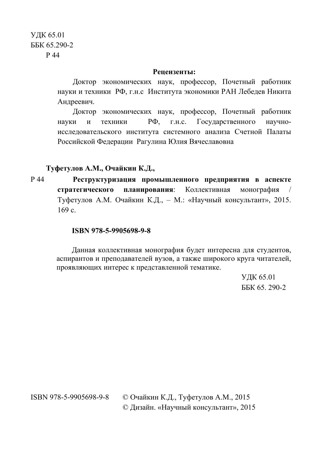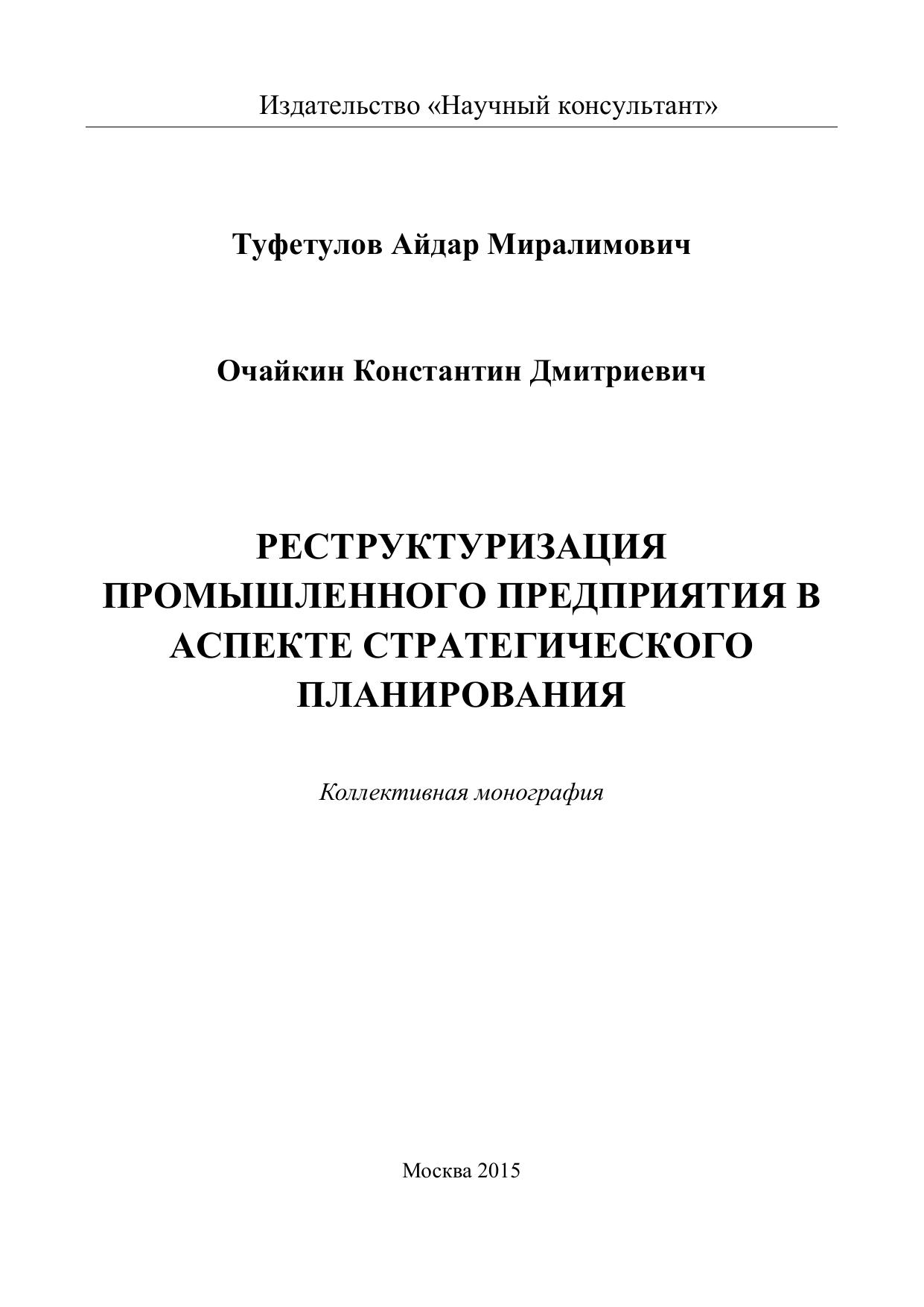 Реструктуризация промышленного предприятия в аспекте стратегического планирования: Коллективная монография