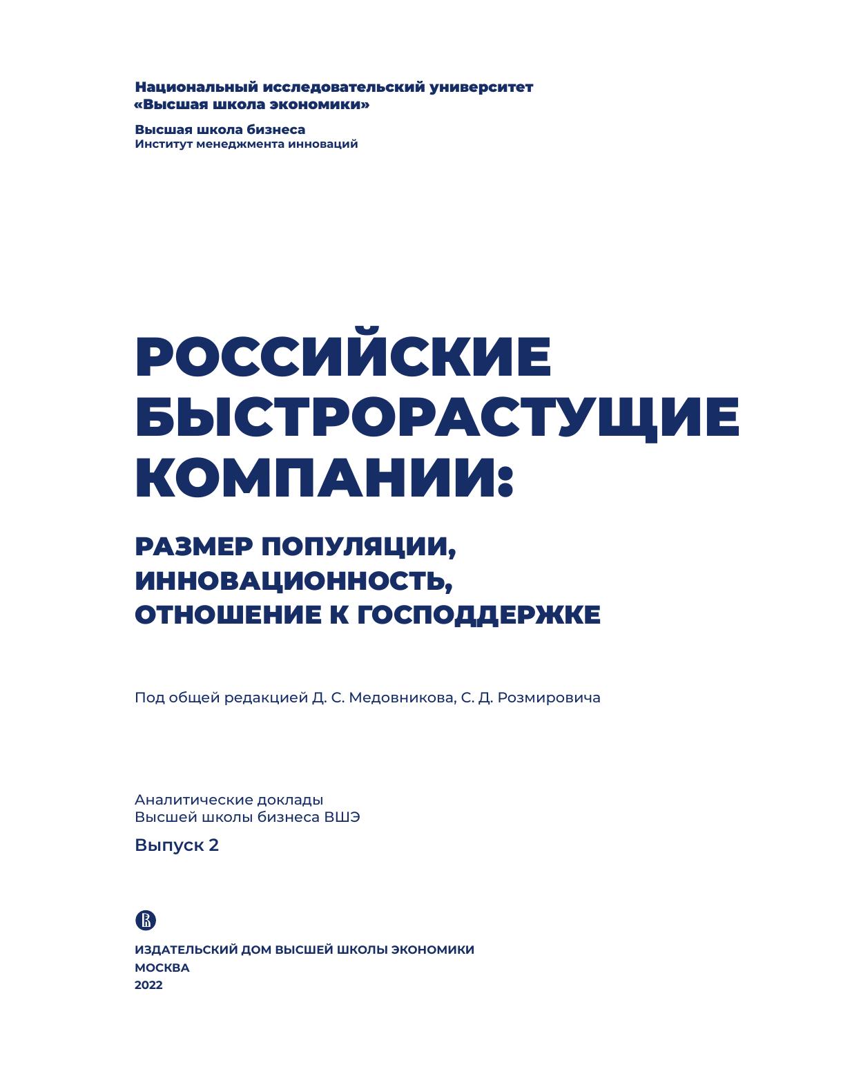 Российские быстрорастущие компании: размер популяции, инновационность, отношение к господдержке. Аналитический доклад