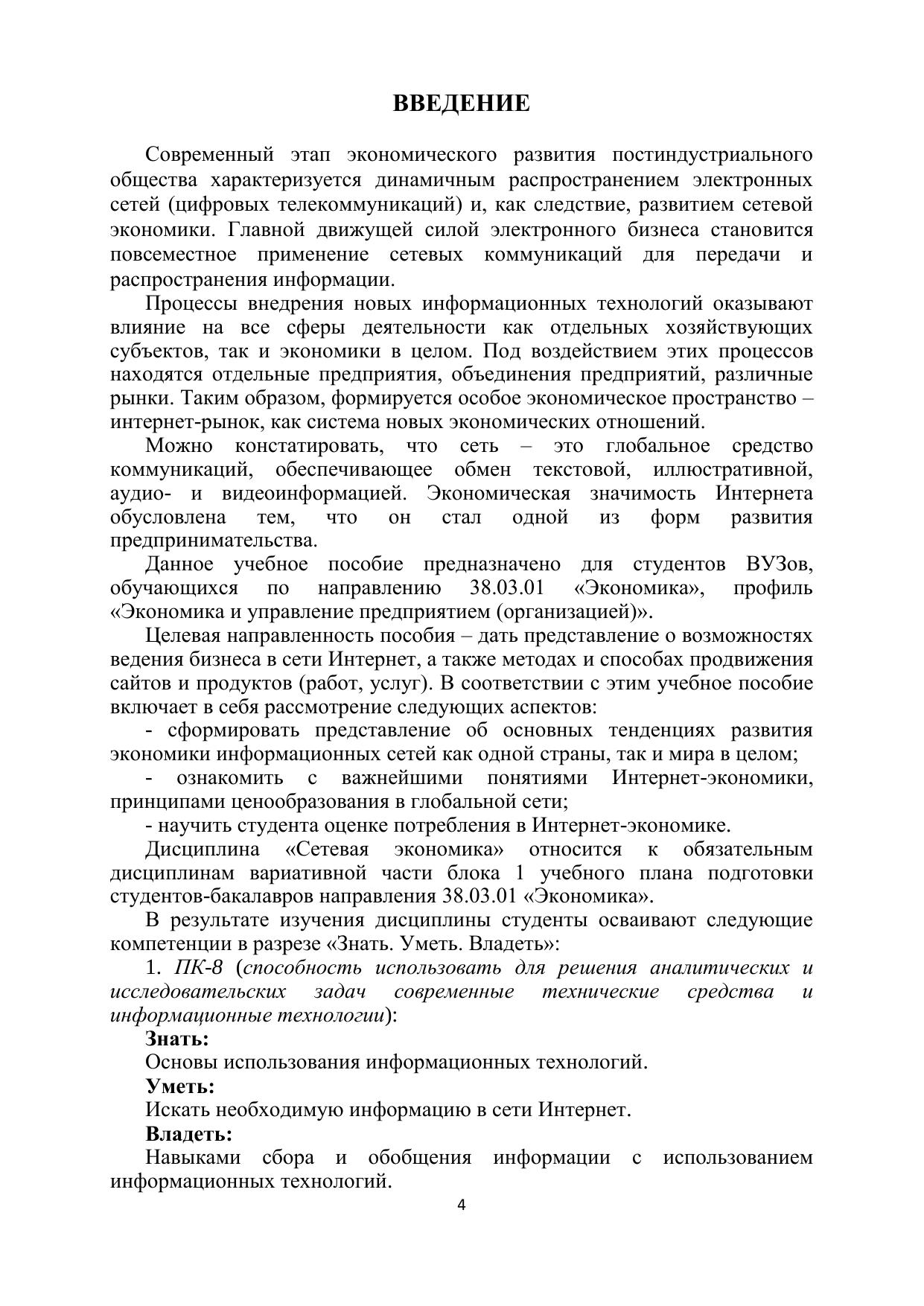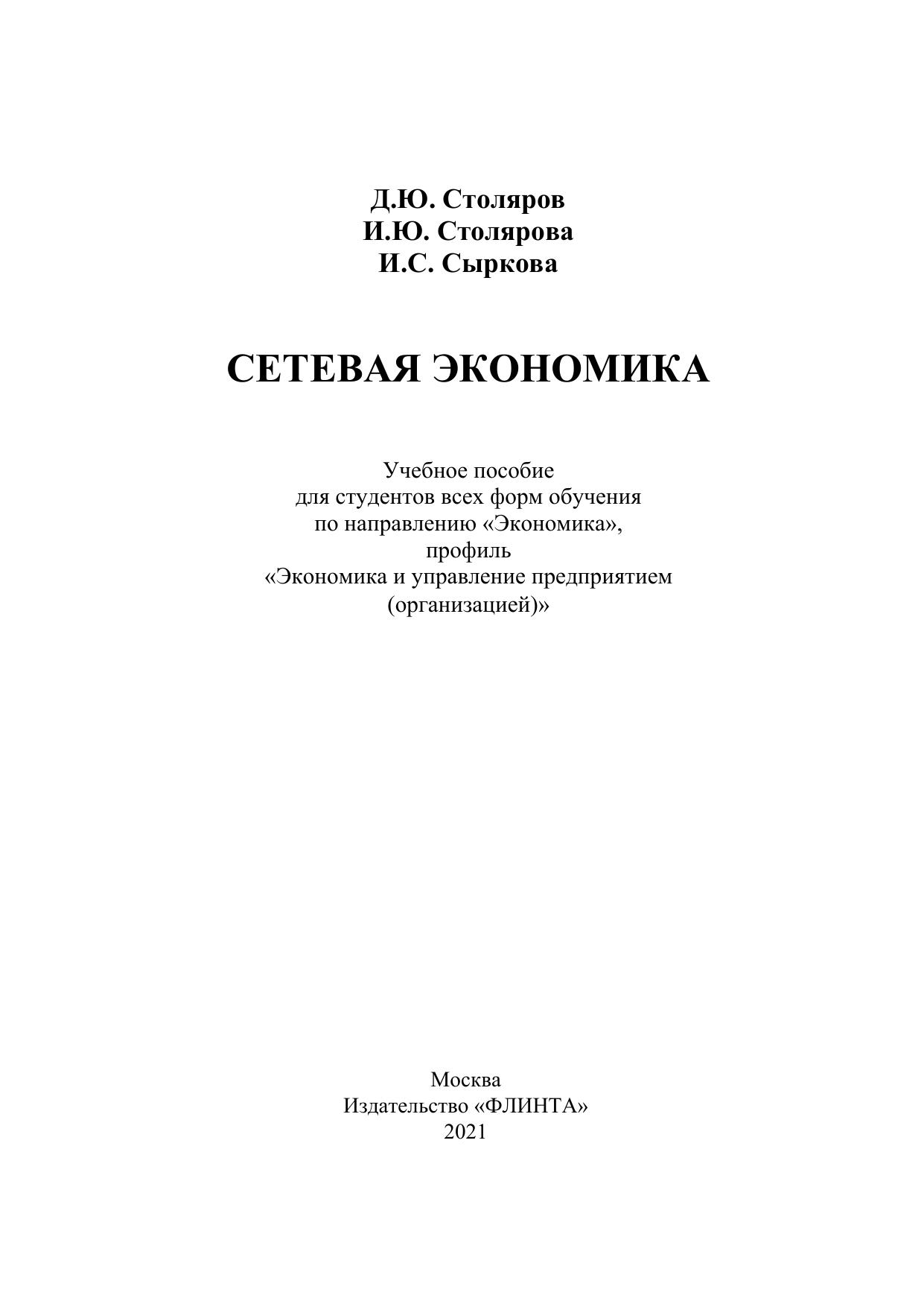 Разработано в соответствии с программой дисциплины «Сетевая экономика» и предназначено для студентов всех форм обучения по направлению 38.03.01 «Экономика», профиль «Экономика и управление предприятием (организацией)».