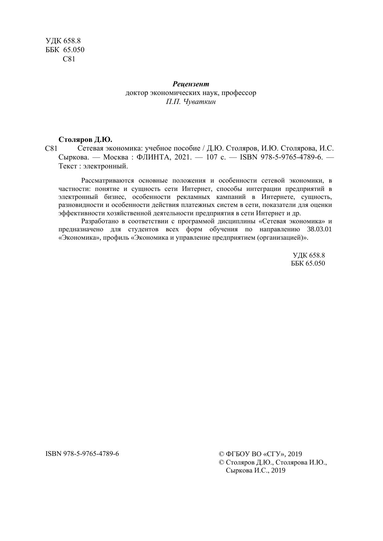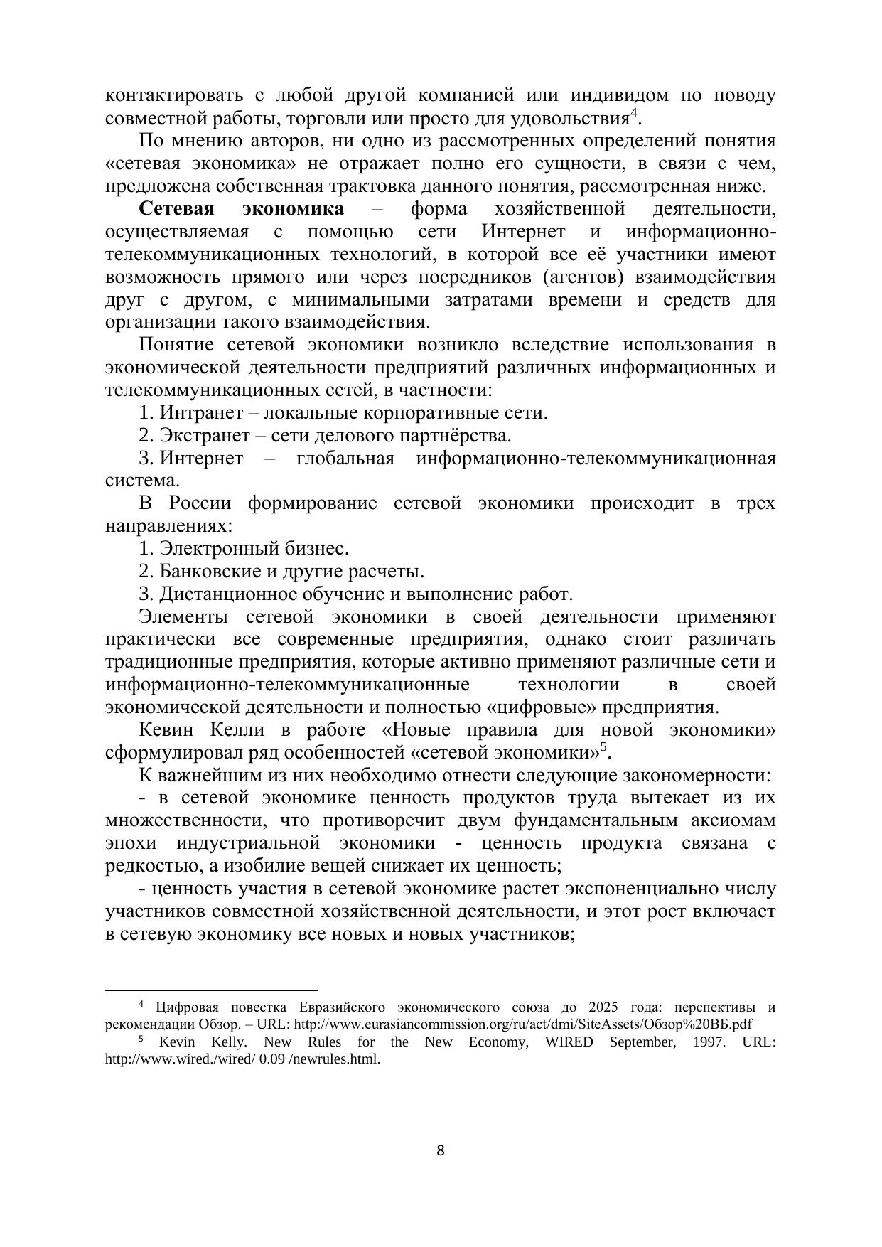 Рассматриваются основные положения и особенности сетевой экономики, в частности: понятие и сущность сети Интернет, способы интеграции предприятий в электронный бизнес, особенности рекламных кампаний в Интернете, сущность, разновидности и особенности действия платежных систем в сети, показатели для оценки эффективности хозяйственной деятельности предприятия в сети Интернет и др.