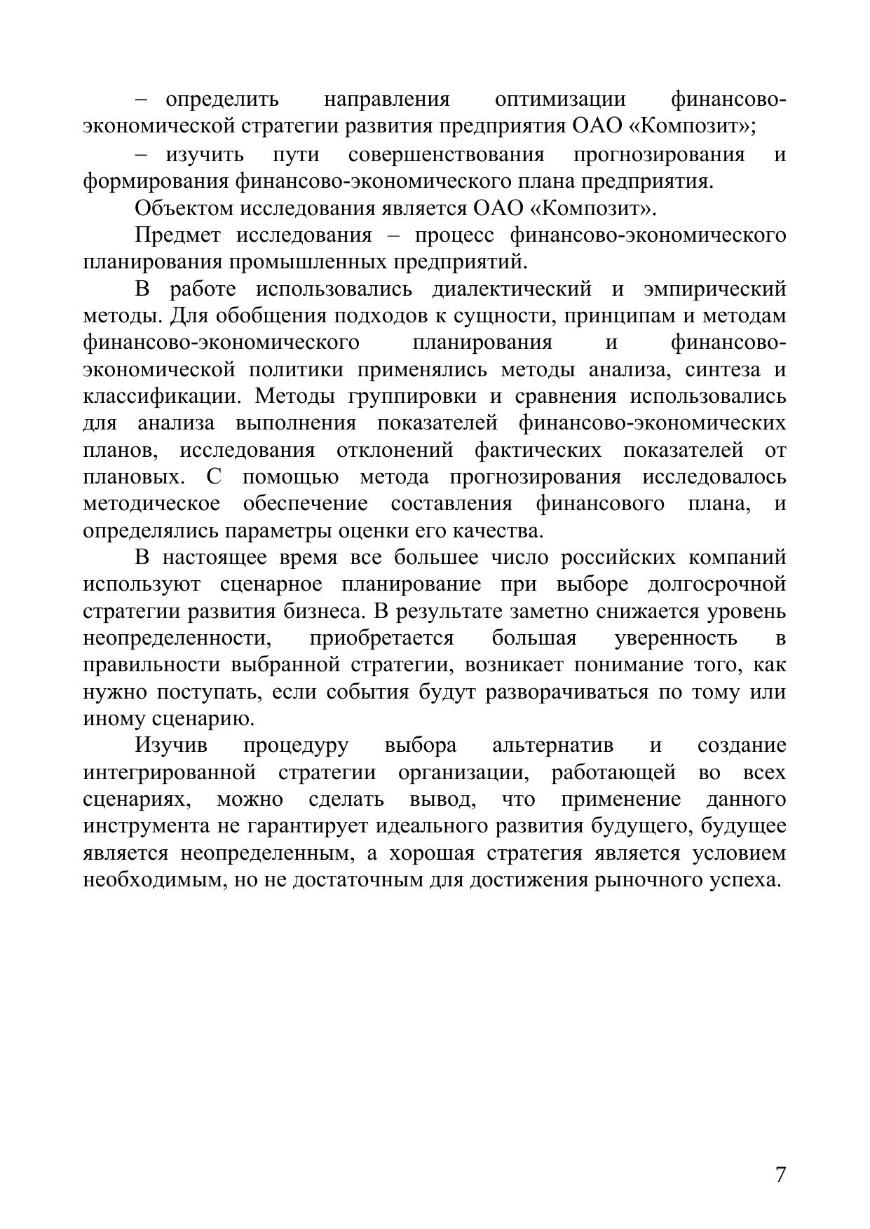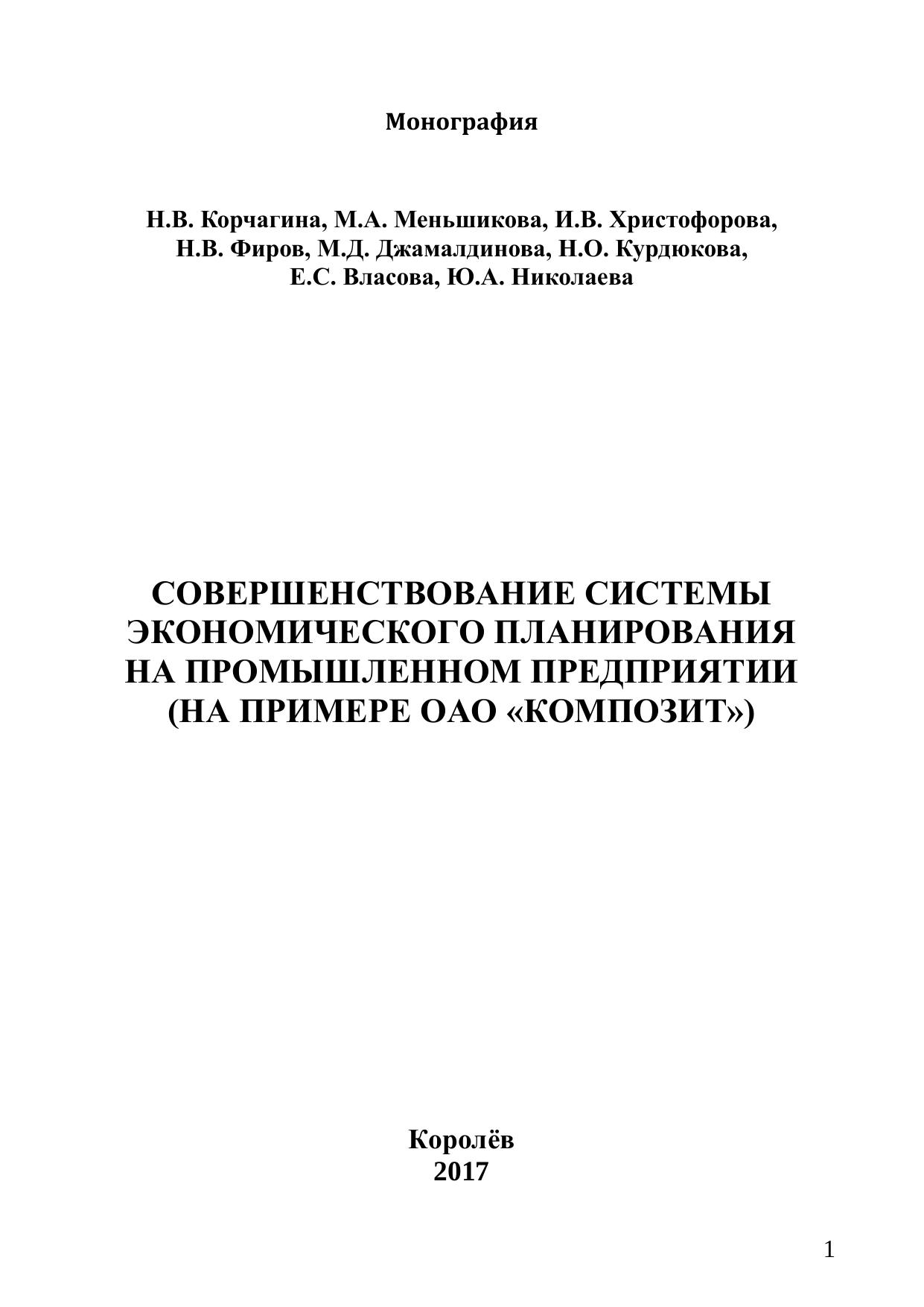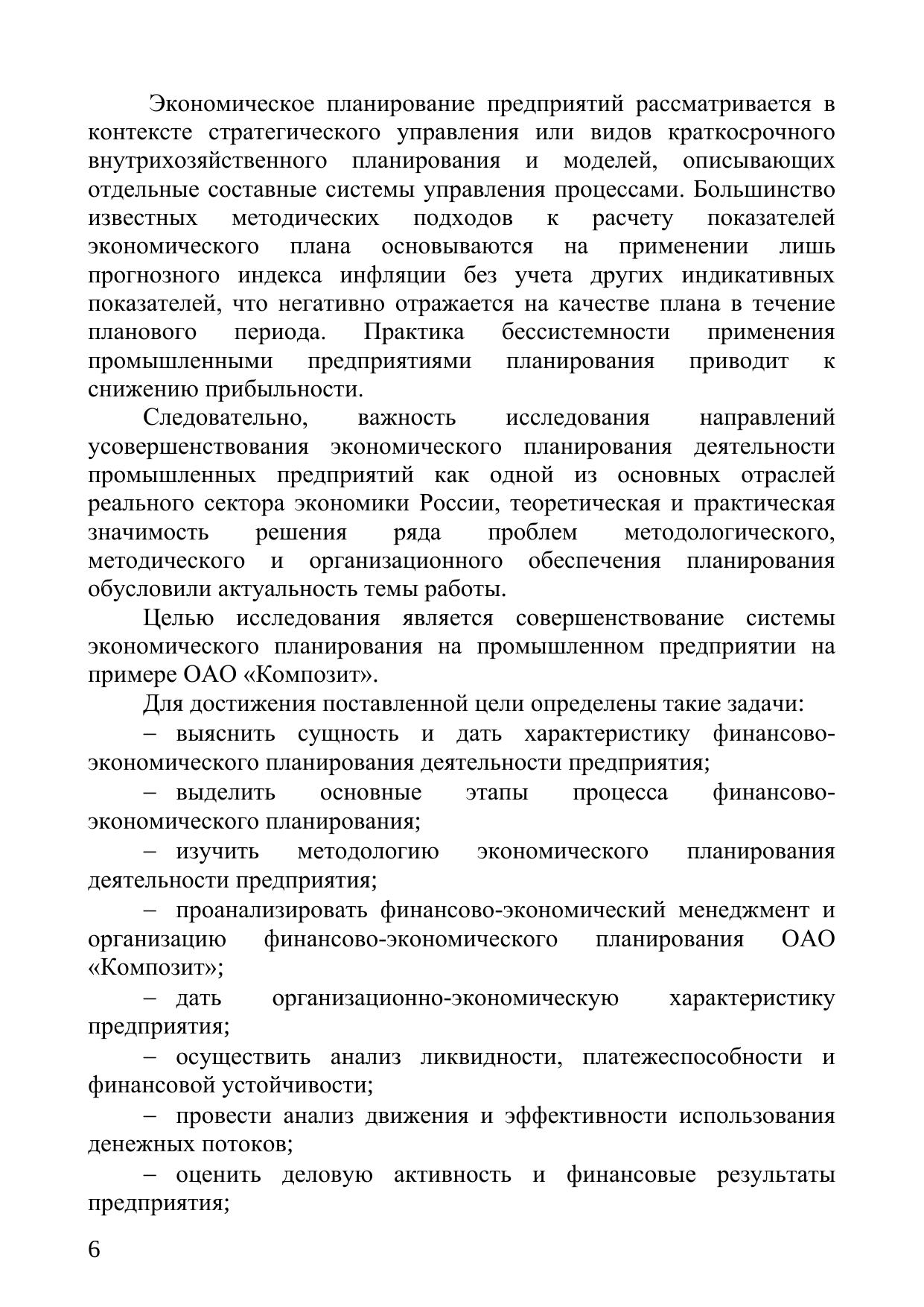 Совершенствование системы экономического планирования на промышленном предприятии (на примере ОАО «Композит»)