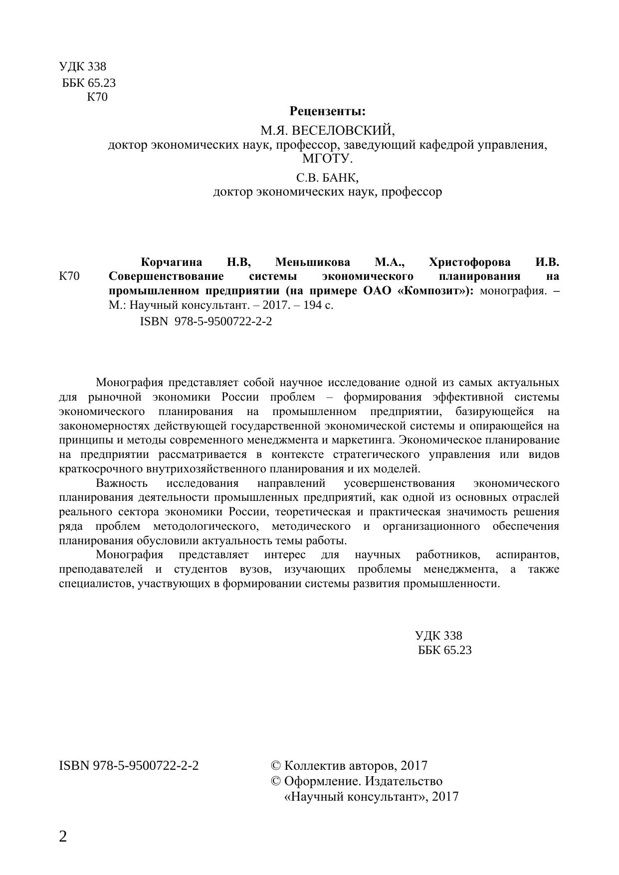 Монография представляет собой научное исследование одной из самых актуальных для рыночной экономики России проблем – формирования эффективной системы экономического планирования на промышленном предприятии, базирующейся на закономерностях действующей государственной экономической системы и опирающейся на принципы и методы современного менеджмента и маркетинга. Экономическое планирование на предприятии рассматривается в контексте стратегического управления или видов краткосрочного внутрихозяйственного планирования и их моделей. Важность исследования направлений усовершенствования экономического планирования деятельности промышленных предприятий, как одной из основных отраслей реального сектора экономики России, теоретическая и практическая значимость решения ряда проблем методологического, методического и организационного обеспечения планирования обусловили актуальность темы работы. Монография представляет интерес для научных работников, аспирантов,преподавателей и студентов вузов, изучающих проблемы менеджмента, а также специалистов, участвующих в формировании системы развития промышленности.