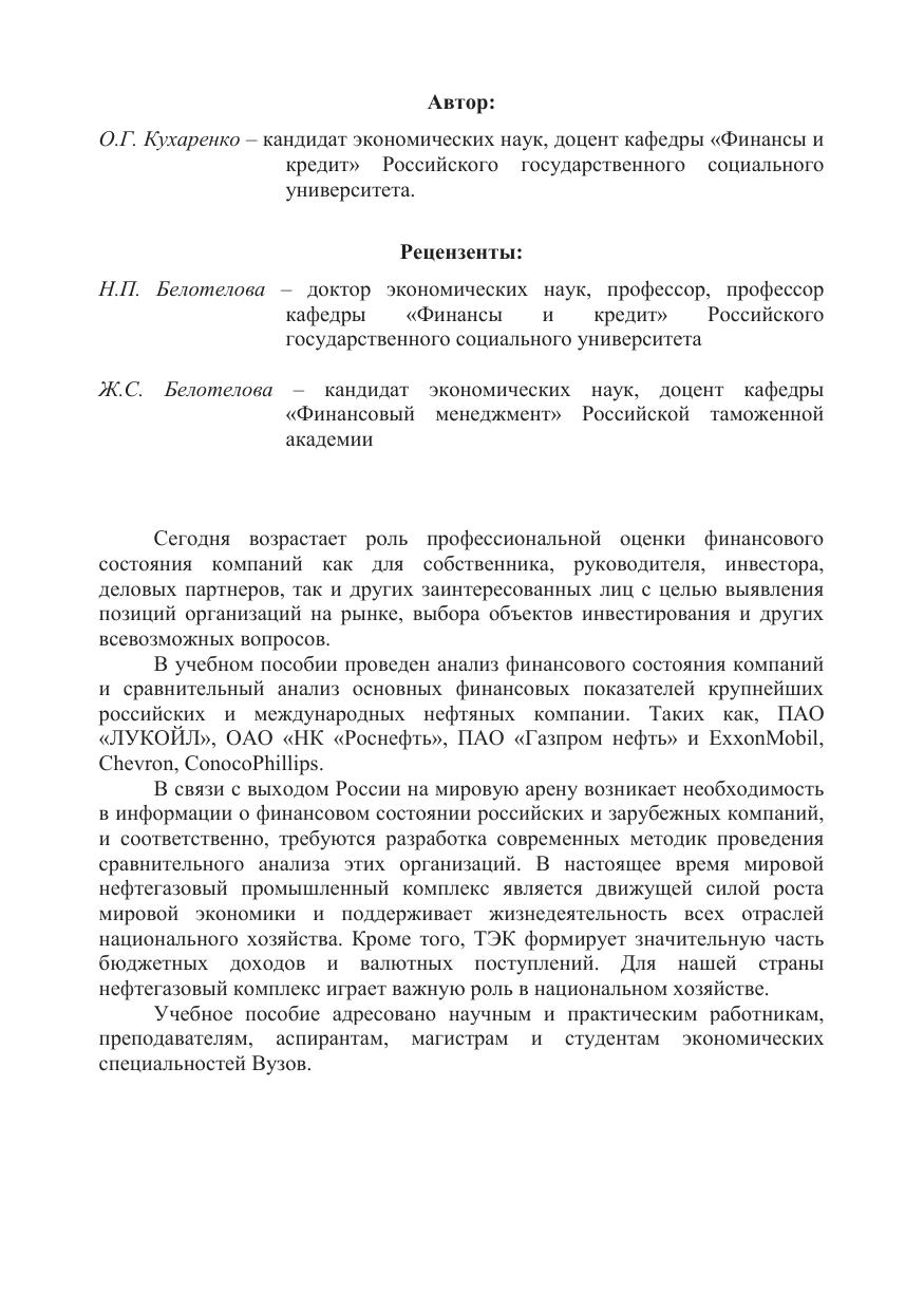 Сравнительный анализ финансового состояния международных нефтяных компаний: учебное пособие