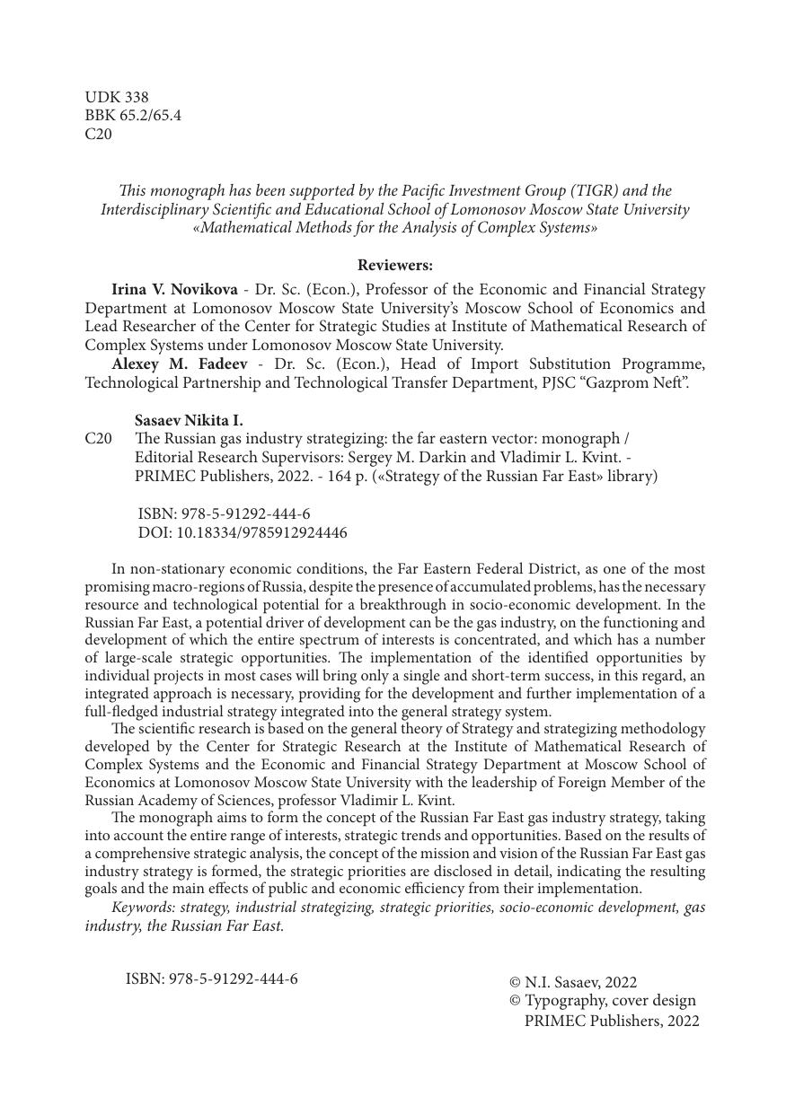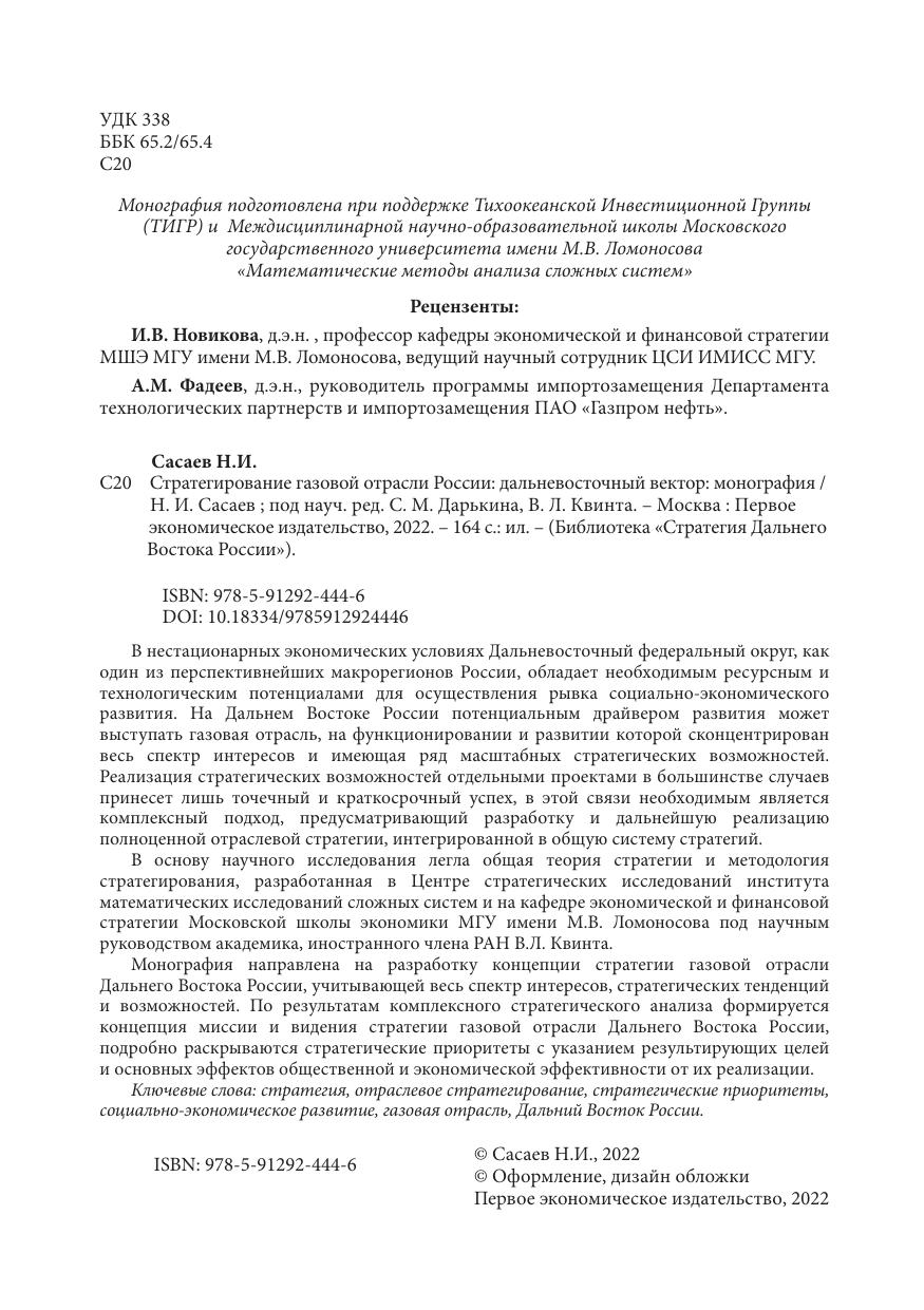 В нестационарных экономических условиях Дальневосточный федеральный округ, как один из перспективнейших макрорегионов России, обладает необходимым ресурсным и технологическим потенциалами для осуществления рывка социально-экономического развития. На Дальнем Востоке России потенциальным драйвером развития может выступать газовая отрасль, на функционировании и развитии которой сконцентрирован весь спектр интересов и имеющая ряд масштабных стратегических возможностей. Реализация стратегических возможностей отдельными проектами в большинстве случаев принесет лишь точечный и краткосрочный успех, в этой связи необходимым является комплексный подход, предусматривающий разработку и дальнейшую реализацию полноценной отраслевой стратегии, интегрированной в общую систему стратегий. В основу научного исследования легла общая теория стратегии и методология стратегирования, разработанная в Центре стратегических исследований института математических исследований сложных систем и на кафедре экономической и финансовой стратегии Московской школы экономики МГУ имени М.В. Ломоносова под научным руководством академика, иностранного члена РАН В.Л. Квинта. Монография направлена на разработку концепции стратегии газовой отрасли Дальнего Востока России, учитывающей весь спектр интересов, стратегических тенденций и возможностей. По результатам комплексного стратегического анализа формируется концепция миссии и видения стратегии газовой отрасли Дальнего Востока России, подробно раскрываются стратегические приоритеты с указанием результирующих целей и основных эффектов общественной и экономической эффективности от их реализации.