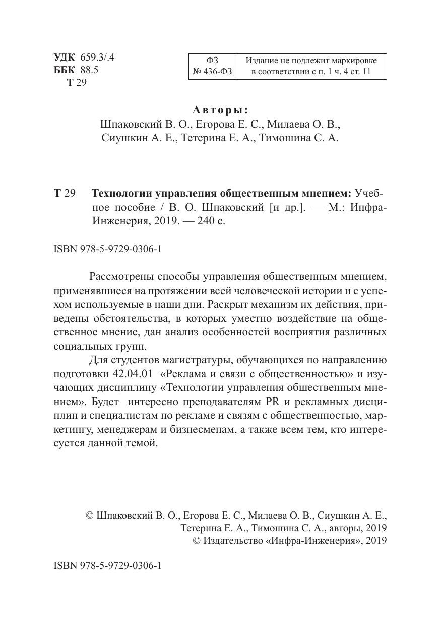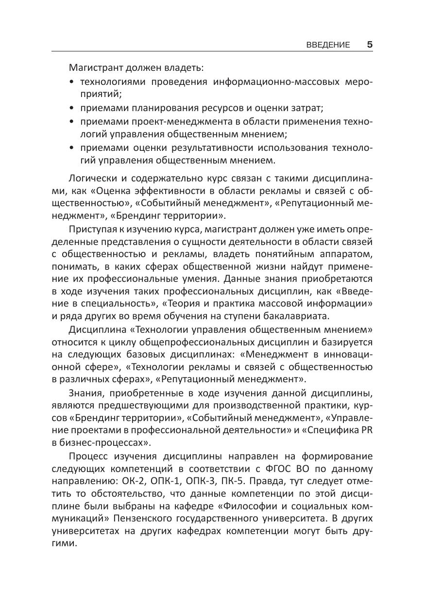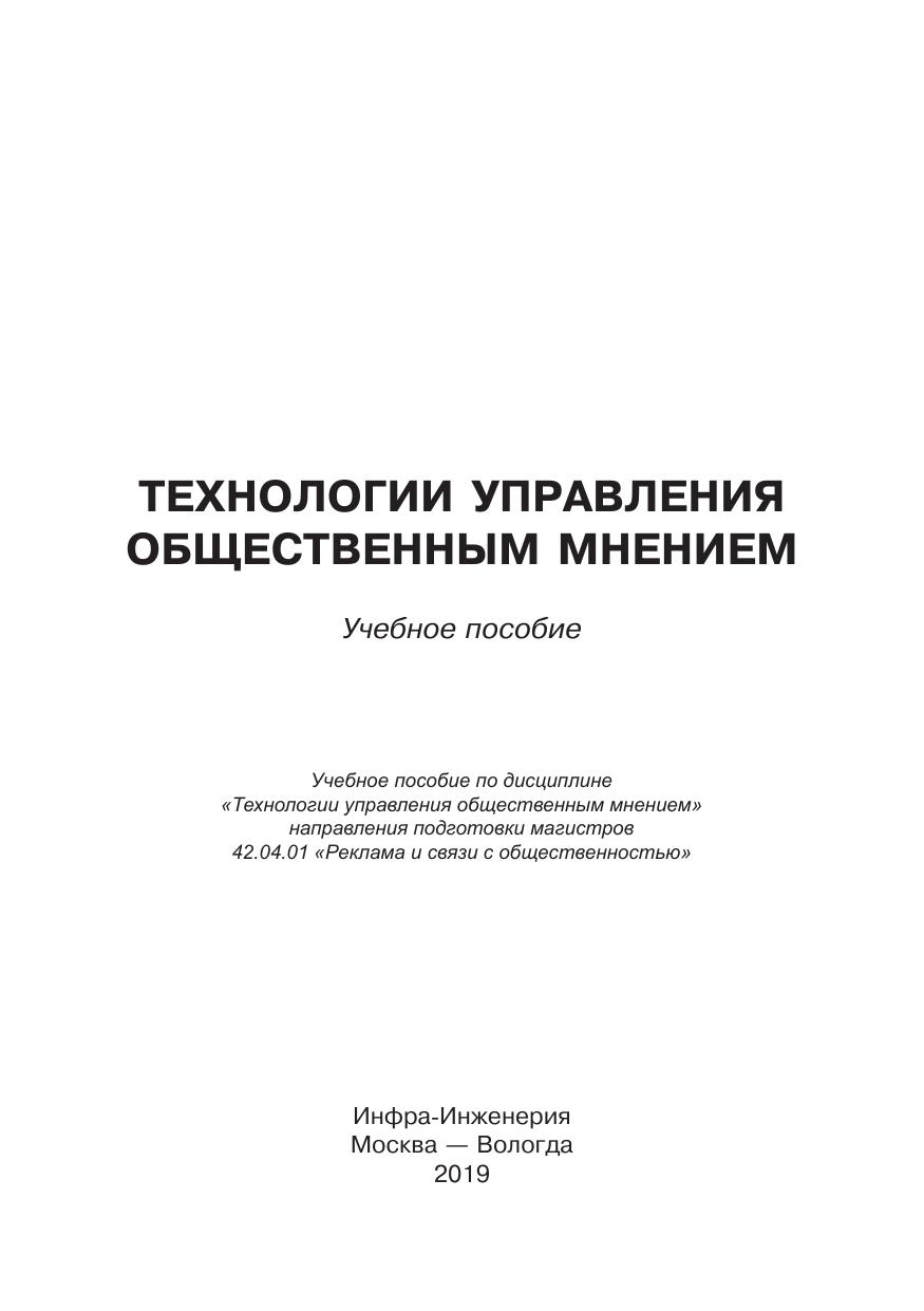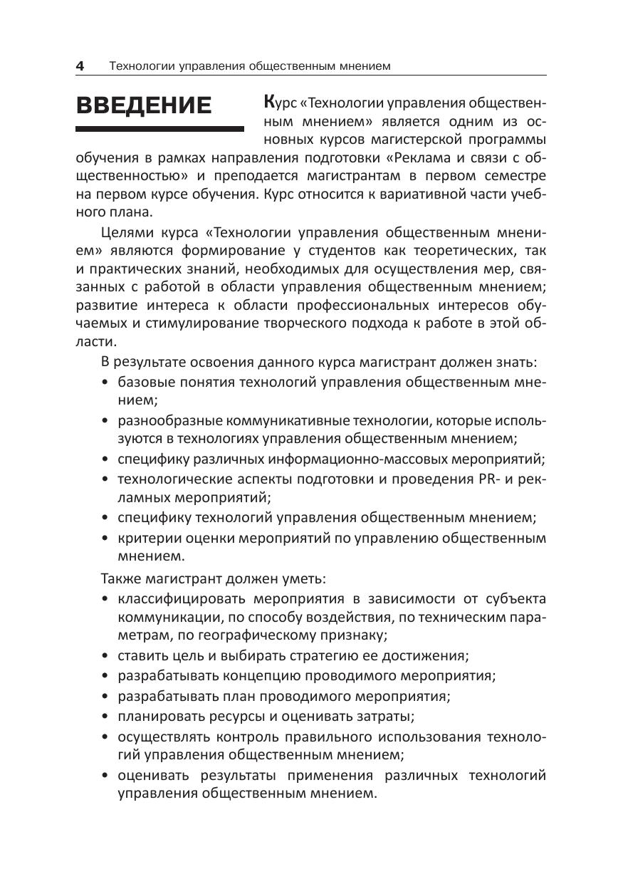 Рассмотрены способы управления общественным мнением, применявшиеся на протяжении всей человеческой истории и с успехом используемые в наши дни. Раскрыт механизм их действия, приведены обстоятельства, в которых уместно воздействие на общественное мнение, дан анализ особенностей восприятия различных социальных групп. Для студентов магистратуры, обучающихся по направлению подготовки 42.04.01 «Реклама и связи с общественностью» и изучающих дисциплину «Технологии управления общественным мнением». Будет интересно преподавателям PR и рекламных дисциплин и специалистам по рекламе и связям с общественностью, маркетингу, менеджерам и бизнесменам, а также всем тем, кто интересуется данной темой.