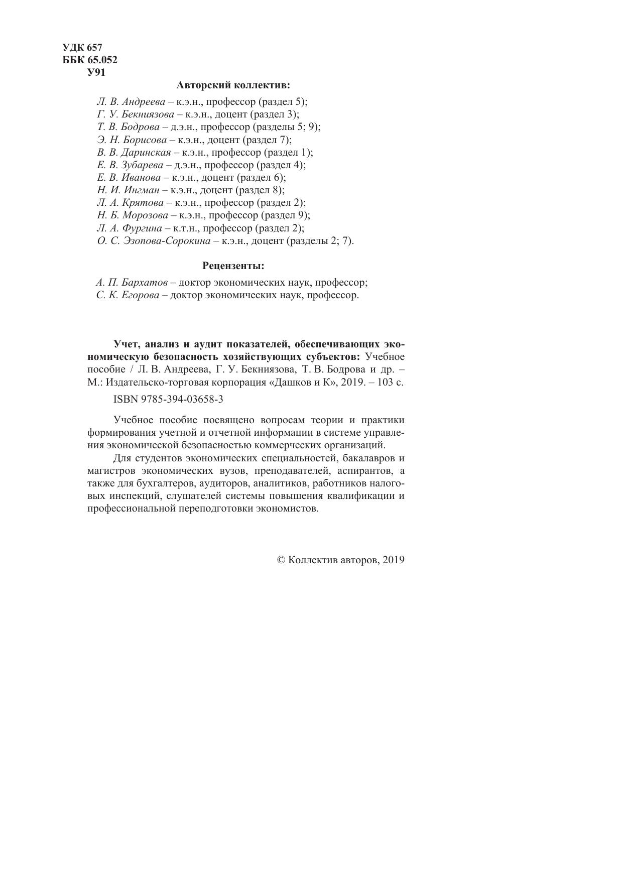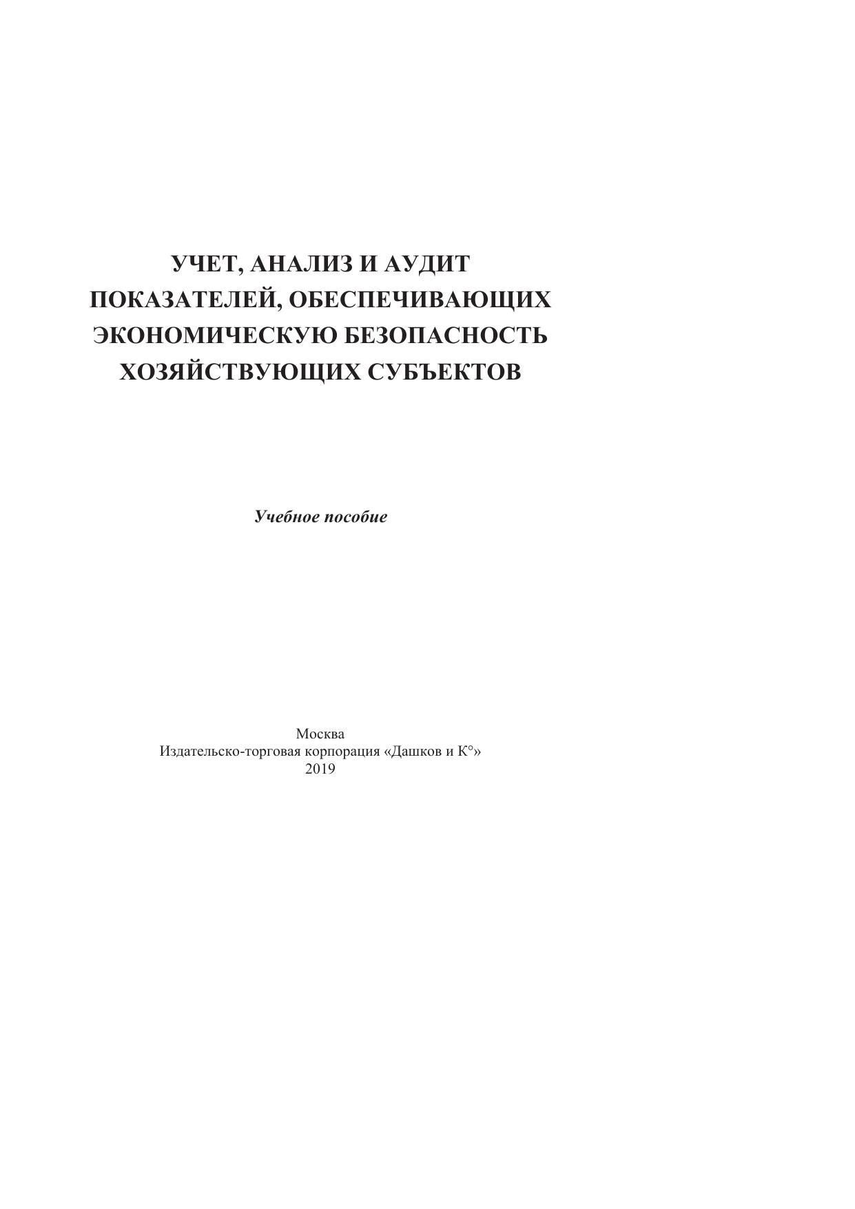 Учет, анализ и аудит показателей, обеспечивающих экономическую безопасность хозяйствующих субъектов