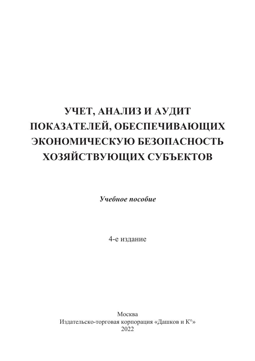 Учет, анализ и аудит показателей, обеспечивающих экономическую безопасность хозяйствующих субъектов