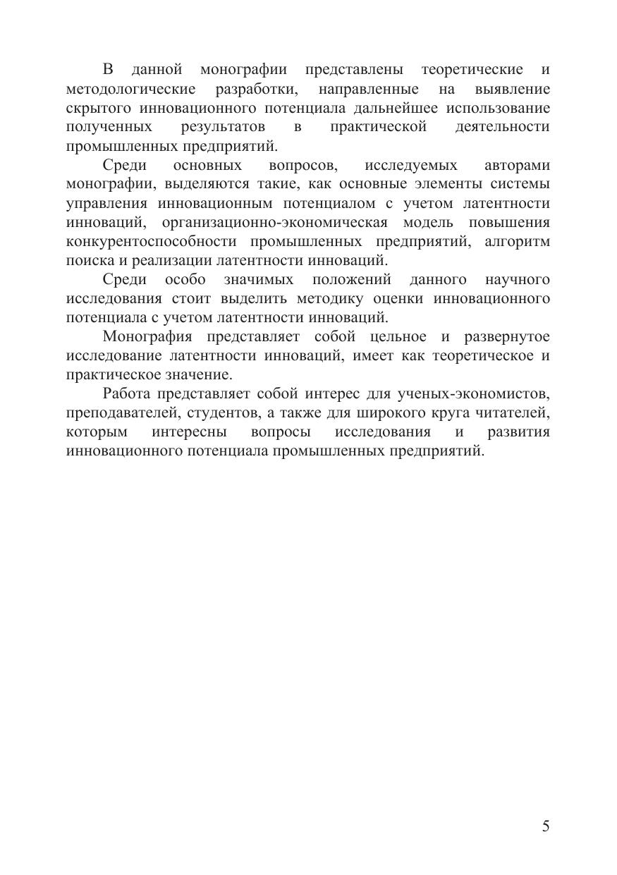 В монографии рассмотрены теоретические основы системы управления инновационном потенциалом предприятия с учетом латентности инновации. Представлены основные элементы системы управления инновационным потенциалом, алгоритм поиска и реализации инноваций предложена методика оценки инновационного потенциала с учетом латентности инноваций.