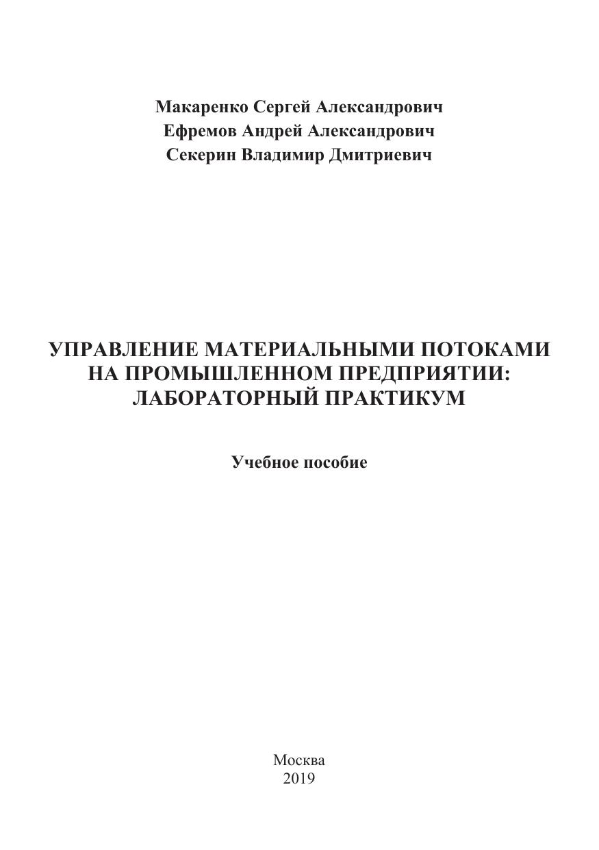 Управление материальными потоками на промышленном предприятии: лабораторный практикум