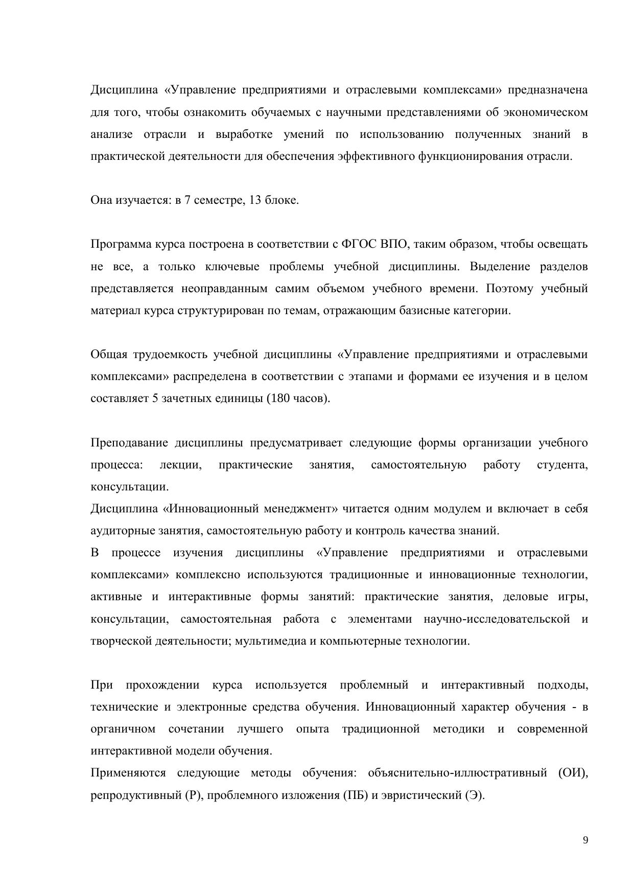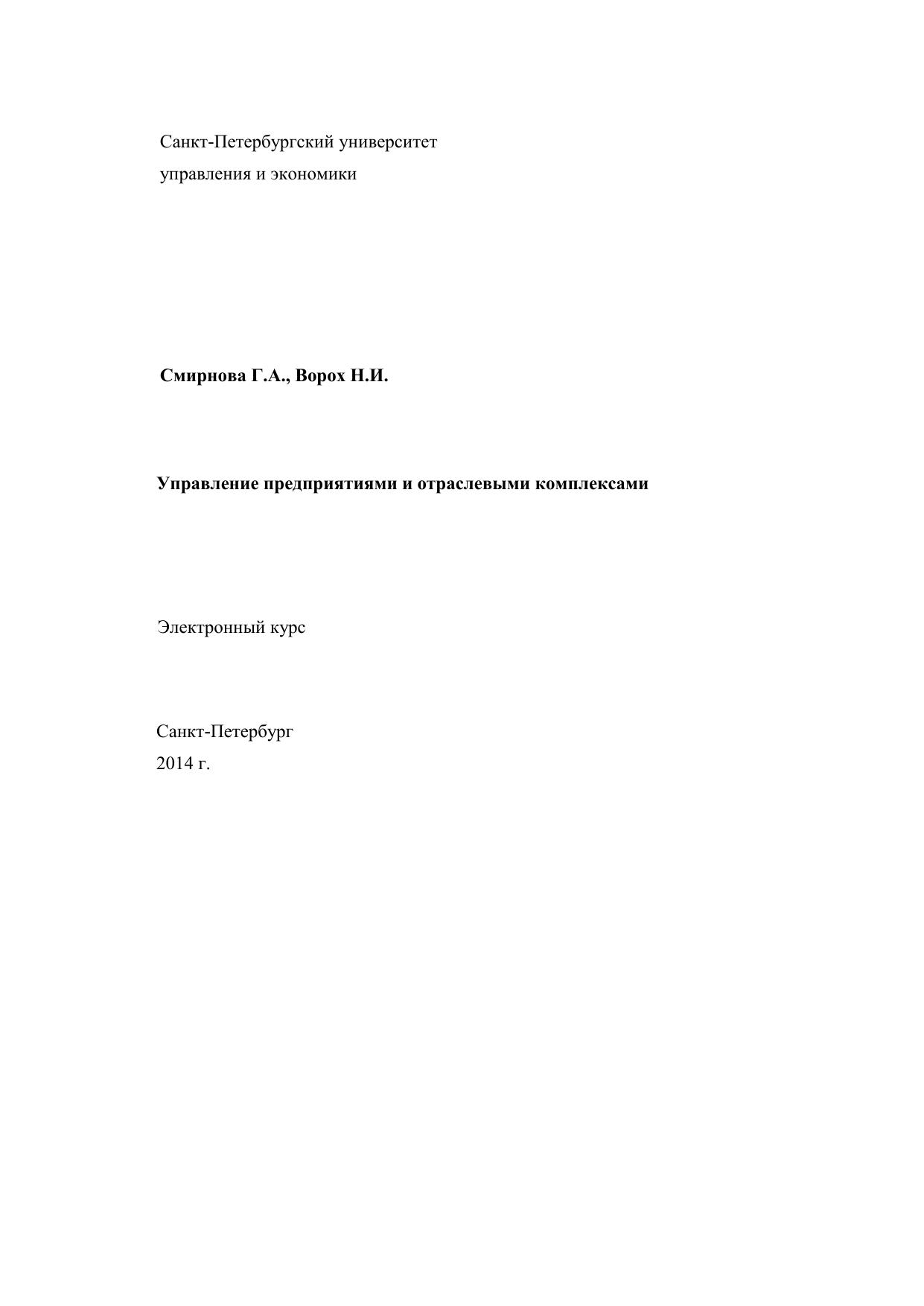 Электронный курс «Управление предприятиями и отраслевыми комплексами» написан на основе требований федерального государственного образовательного стандарта высшего профессионального образования к содержанию и уровню подготовки выпускника по направлению 080200.62 «Менеджмент» в соответствии с рабочими учебными планами направления подготовки «Менеджмент» (степень) «бакалавр», профиль подготовки «Производственный менеджмент» и направлен на формирование у студентов знаний теоретических закономерностей отечественного опыта организации и управления предприятиями и отраслевыми комплексами, действующей законодательной и нормативной базы, которые помогут в дальнейшем выполнять служебные обязанности, возлагаемые на менеджеров корпораций. Целью создания электронного курса является подготовка специалиста, обладающего необходимыми теоретическими знаниями об экономическом анализе отрасли, а также выработка умений по использованию полученных знаний в практической деятельности для обеспечения эффективного функционирования отрасли. Управление предприятием занимает основное, определяющее положение в структуре финансовых отношений и является важнейшей сферой финансовой системы страны. Развитие рыночных отношений и создание необходимых условий эффективного функционирования корпоративных финансов обусловило повышение роли финансов в хозяйственной деятельности российских организаций. Настоящее учебное пособие является кратким изложением основ управления предприятиями и отраслевыми комплексами. Предметом изучения настоящего курса являются: роль и значение отрасли в системе рыночной экономики признаки отрасли и показатели развития организация (предприятие) как хозяйствующий субъект в рыночной экономике организационно-правовые формы хозяйствования производственная структура организации (предприятия) и ее элементы типы производства и производственный процесс теоретические и практические основы функционирования экономического механизма функционирования организации (предприятия). Совершенствование подготовки специалистов в этой области, формирование их профессиональных и деловых качеств стало первостепенной задачей общей программы дальнейшего развития экономики страны. Дисциплина «Управление предприятиями и отраслевыми комплексами» из вариативной части профессионального цикла дисциплин, адресована студентам четвёртого курса. Учебные курсы, на которые она опирается: «Теория организации», «Управление проектами», «Производственный (операционный) менеджмент», «Экономика организаций», «Комплексный анализ хозяйственной деятельности». В предлагаемом учебном пособии раскрываются вопросы современного состояния вопросов управления предприятиями и отраслевыми комплексами, их взаимосвязи с государственными финансами, действующее российское законодательство, методика анализа финансового состояния корпорации методы оценки финансовых результатов методы планирования доходов, себестоимости, прибыли методику составления финансового плана в составе бизнес-плана пути улучшения использования капитала и его составных частей разработки финансовой, ценовой и инвестиционной политики предприятия. Приводимые в конце каждой темы вопросы для самоконтроля направлены на закрепление полученных 
