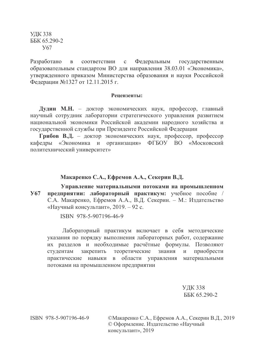 Лабораторный практикум включает в себя методические указания по порядку выполнения лабораторных работ, содержание их разделов и необходимые расчетные формулы. Позволяют студентам закрепить теоретические знания и приобрести практические навыки в области управления материальными потоками на промышленном предприятии.
