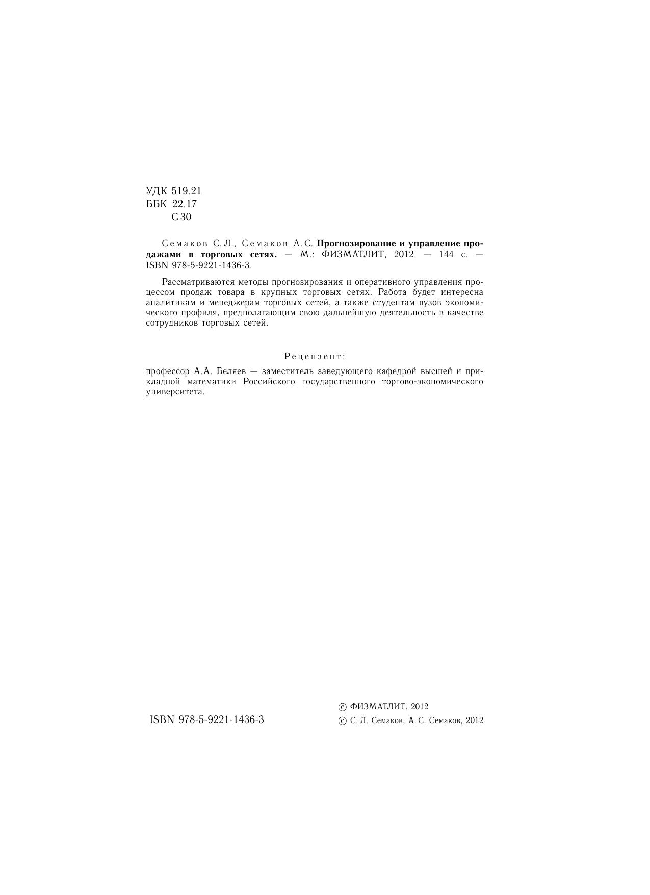 Рассматриваются методы прогнозирования и оперативного управления процессом продаж товара в крупных торговых сетях. Работа будет интересна аналитикам и менеджерам торговых сетей, а также студентам вузов экономического профиля, предполагающим свою дальнейшую деятельность в качестве сотрудников торговых сетей.