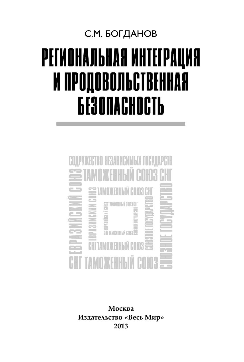 В монографии рассматривается роль региональной интеграции в решении одной из важнейших проблем современности в обеспечении продовольственной безопасности.