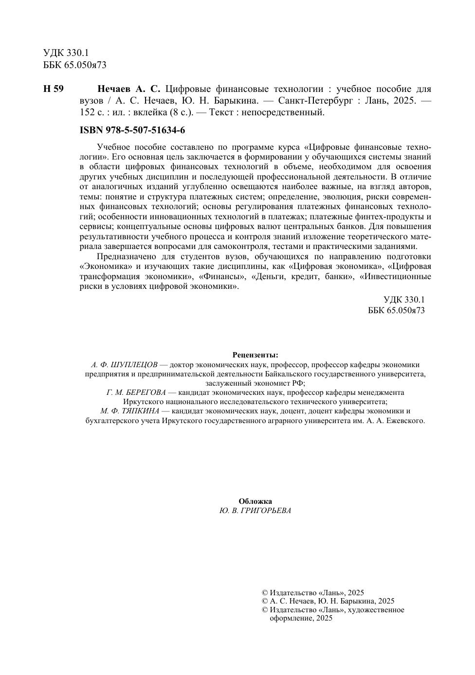 Учебное пособие составлено по программе курса «Цифровые финансовые технологии». Его основная цель заключается в формировании у обучающихся системы знаний в области цифровых финансовых технологий в объеме, необходимом для освоения других учебных дисциплин и последующей профессиональной деятельности. В отличие от аналогичных изданий углубленно освещаются наиболее важные, на взгляд авторов, темы: понятие и структура платежных систем, определение, эволюция, риски современных финансовых технологий, основы регулирования платежных финансовых технологий, особенности инновационных технологий в платежах, платежные финтех-продукты и сервисы, концептуальные основы цифровых валют центральных банков. Для повышения результативности учебного процесса и контроля знаний изложение теоретического материала завершается вопросами для самоконтроля, тестами и практическими заданиями. Предназначено для студентов вузов, обучающихся по направлению подготовки «Экономика» и изучающих такие дисциплины, как «Цифровая экономика», «Цифровая трансформация экономики», «Финансы», «Деньги, кредит, банки», «Инвестиционные риски в условиях цифровой экономики».