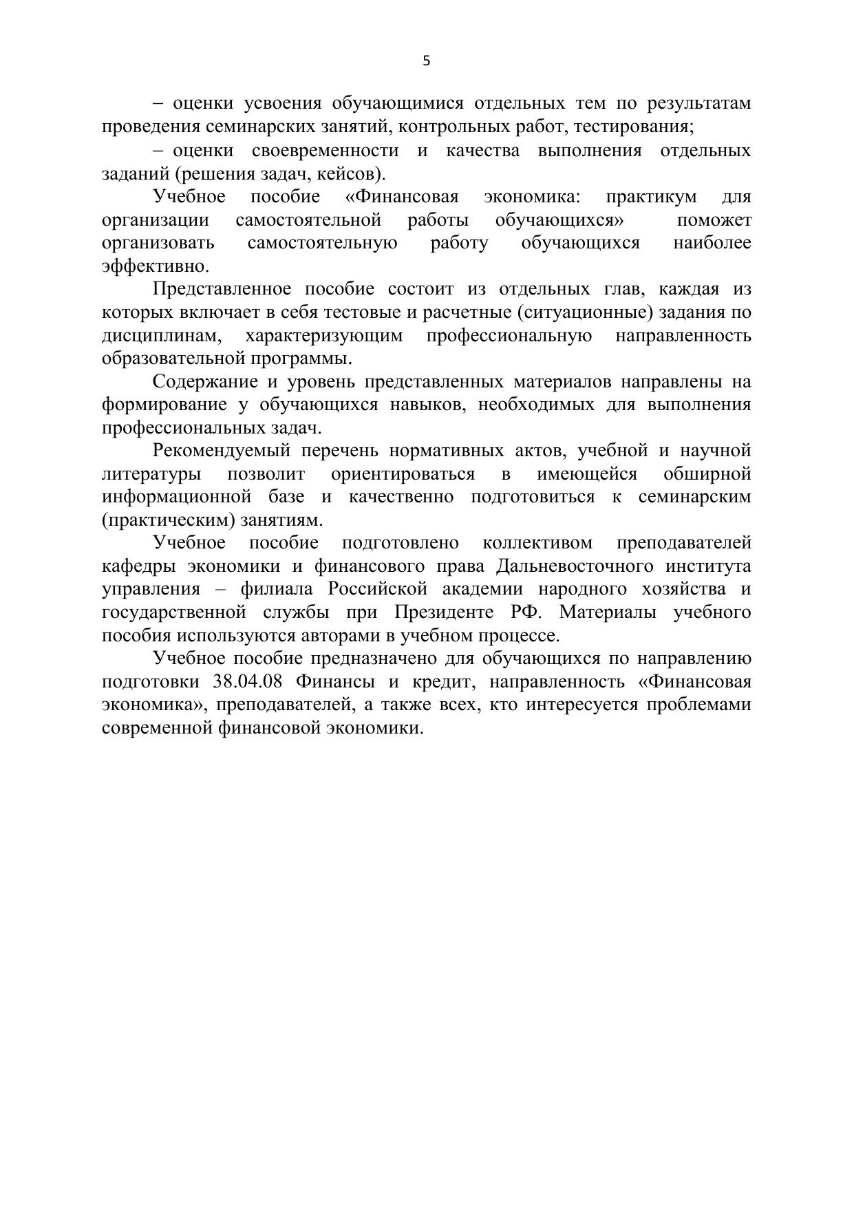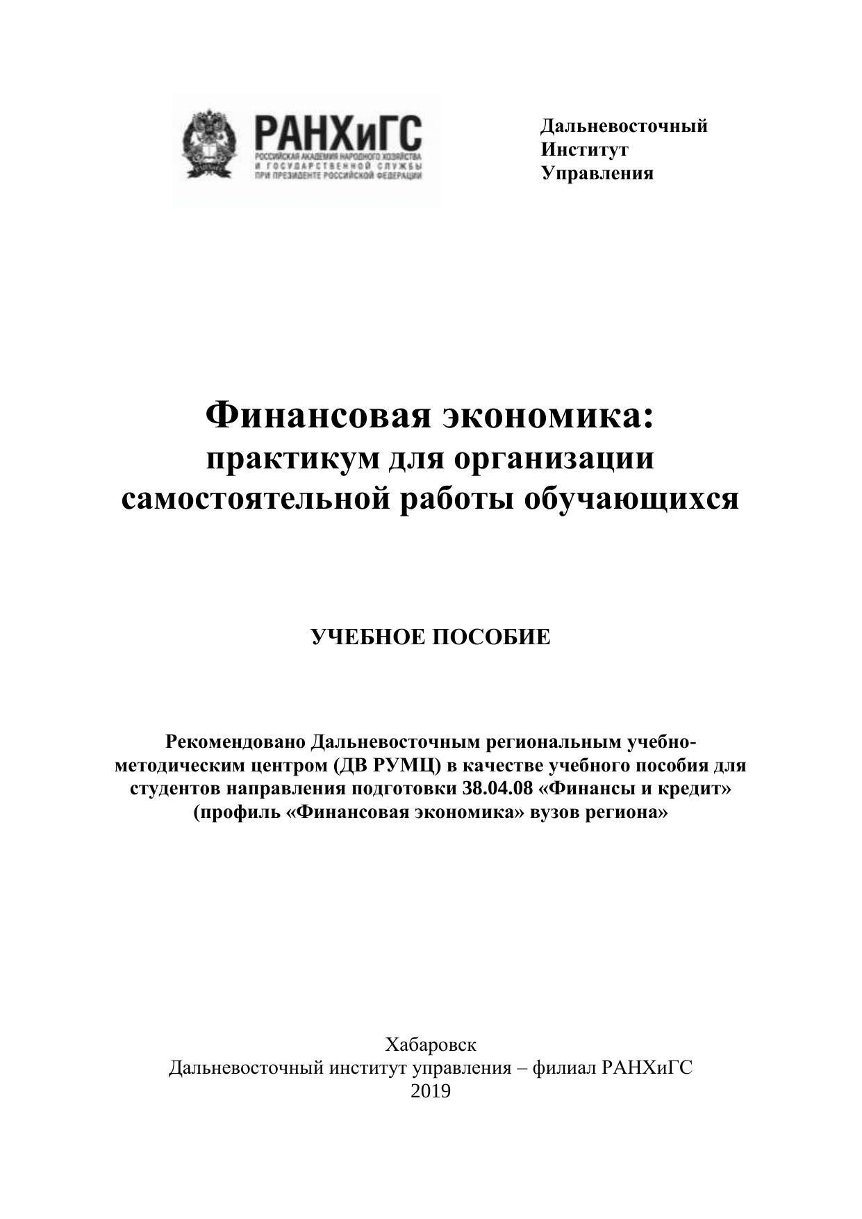 Финансовая экономика: практикум для организации самостоятельной работы обучающихся
