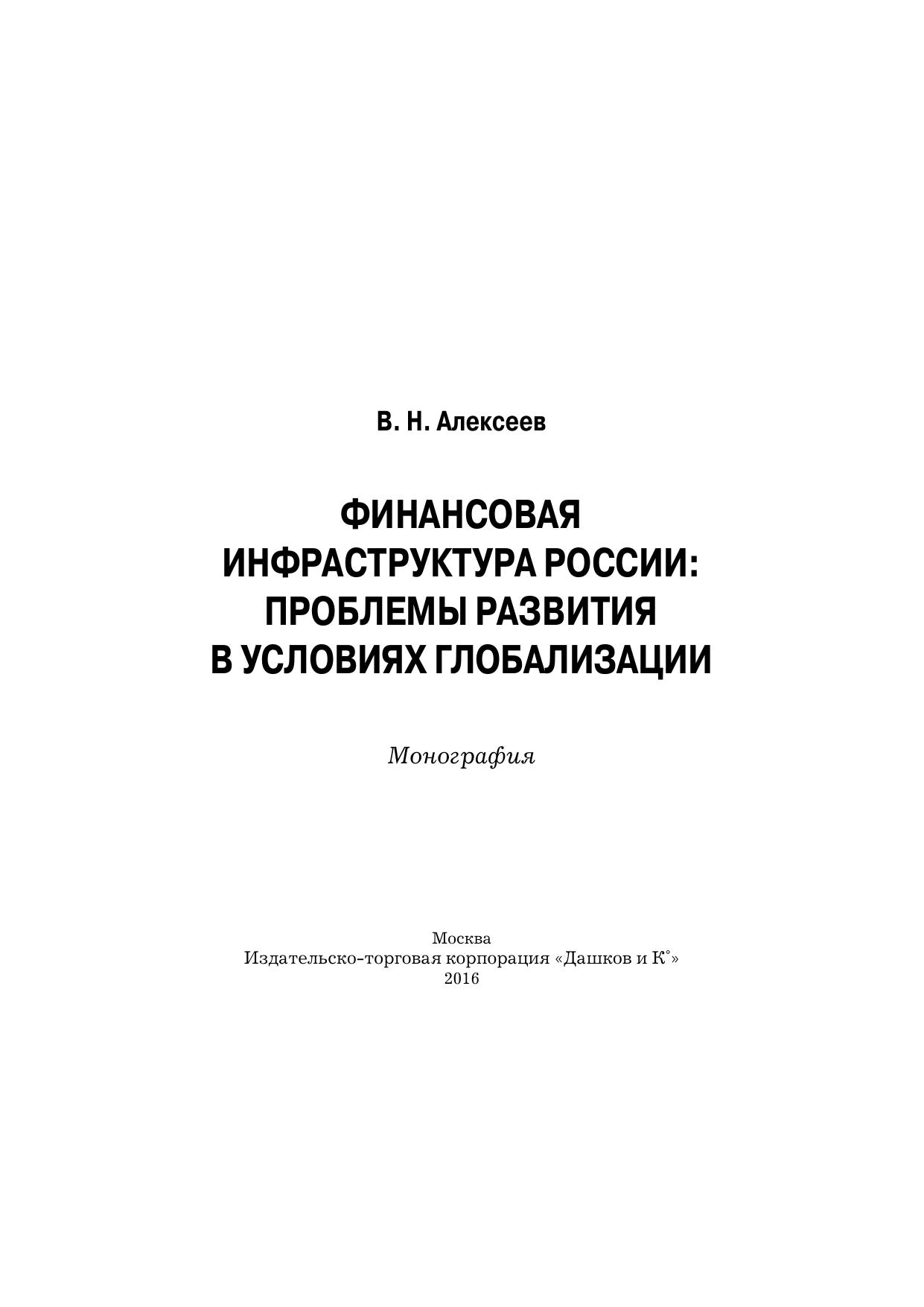 Финансовая инфраструктура России: проблемы развития в условиях глобализации: Монография