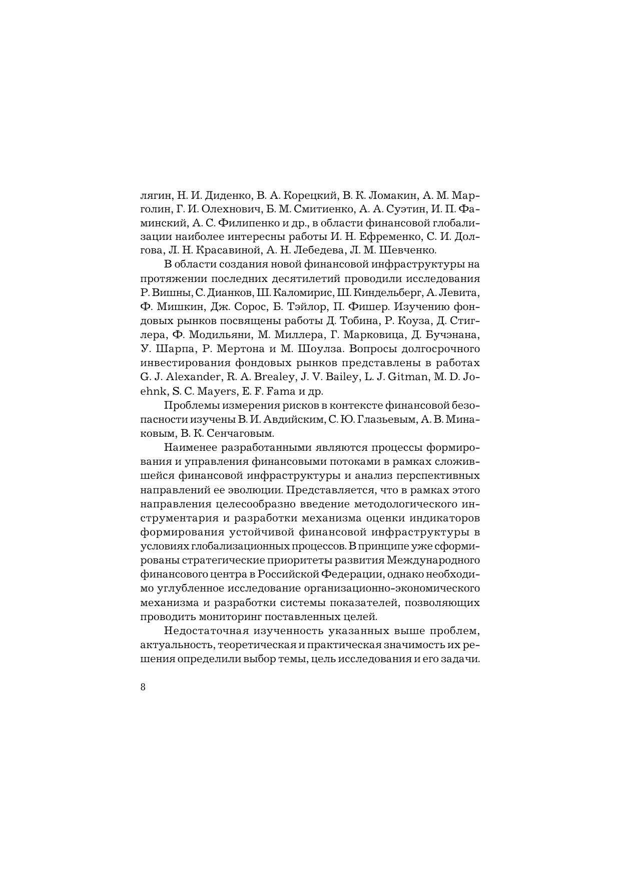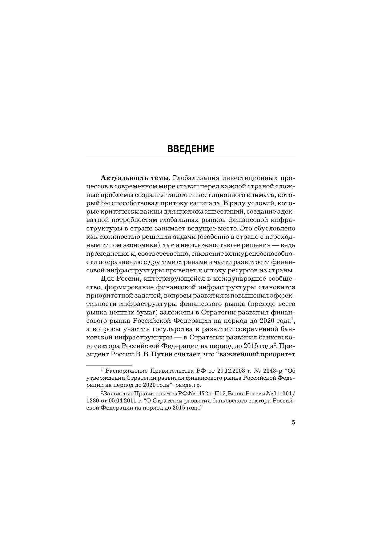 В монографии раскрыты основы становления и развития финансовой инфраструктуры России как совокупности специализированных институтов - банковских, страховых, биржевых инвестиционных организаций, консалтинговых и рейтинговых агентств, расчетно-депозитарных, клиринговых систем - в условиях глобализации. Определены сущность, характеристики и условия институциональной среды финансовой инфраструктуры и обоснованы причины появления новых объектов и институтов на разных фазах экономического развития. Для профессорско-преподавательского состава, аспирантов и студентов, специализирующихся в банковском и страховом деле, инвестициях и инвестиционном менеджменте, в оценке инвестиционной привлекательности регионов и отраслей, а также для профессиональных экспертов.