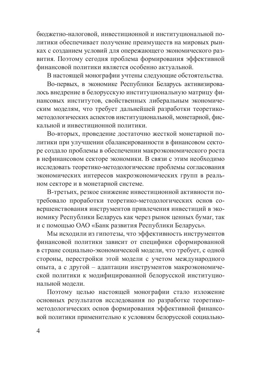 В монографии рассмотрены теоретические и практические аспекты ускорения экономического роста в Республике Беларусь путем совершенствования финансовой политики, включая использование инструментов бюджетно-налогового, денежно-кредитного и институционального регулирования. Рекомендуется ученым, аспирантам, магистрантам, студентам- дипломникам, а также всем интересующимся проблемами создания условий для формирования эффективной национальной экономики.