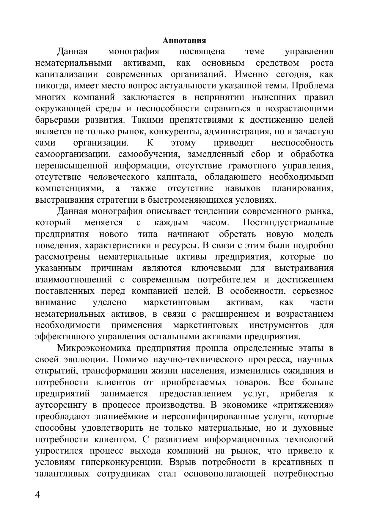 В монографии автором показано влияние и значение маркетинговых активов в инвестиционном стратегическом менеджменте на конкурентоспособность постиндустриальных предприятий.
