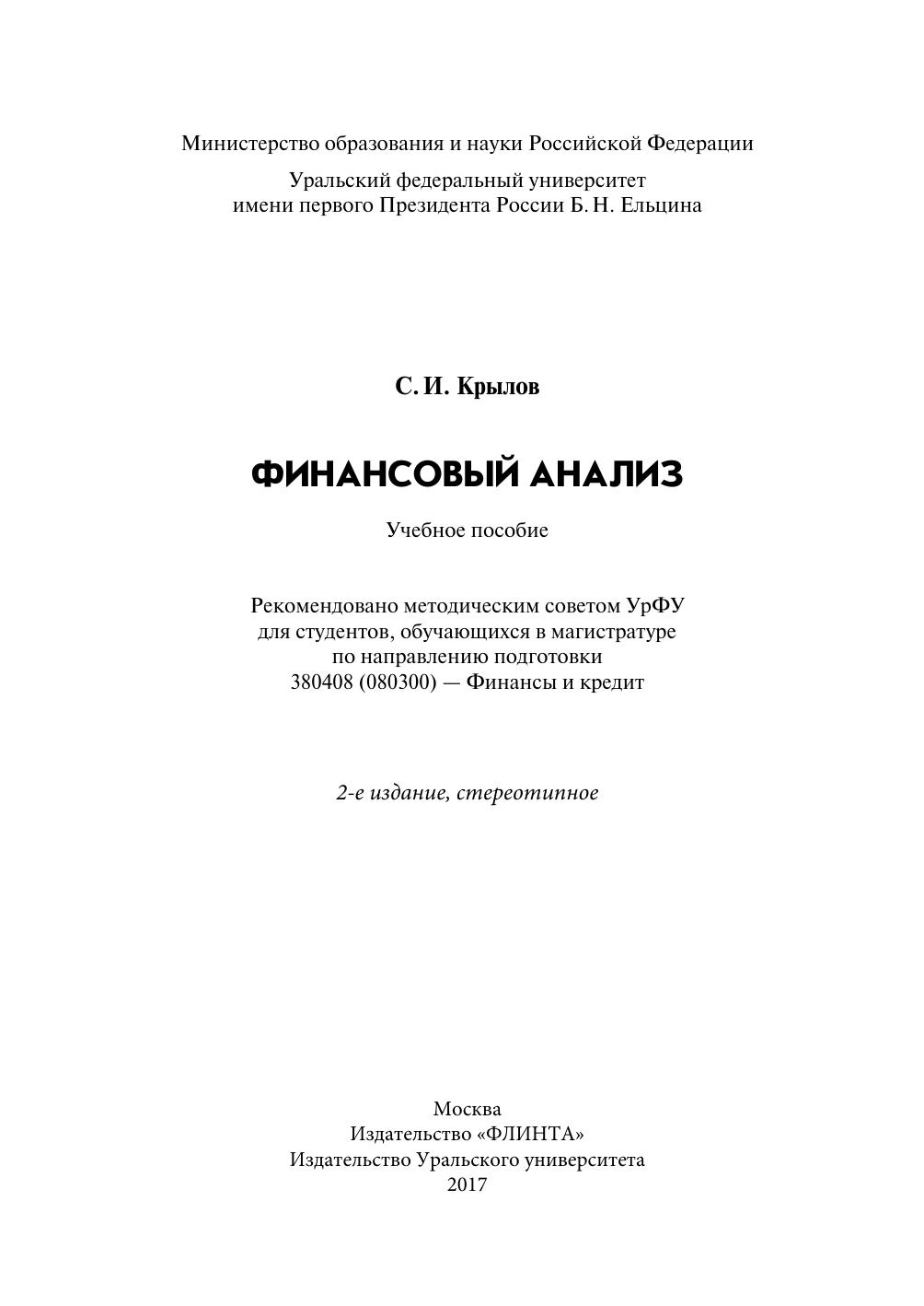 В учебном пособии рассматривается система финансового анализа деятельности организации. Пособие предназначено для студентов, обучающихся в магистратуре по направлению подготовки 380408 (080300) — Финансы и кредит, а также преподавателей и аспирантов экономических специальностей.