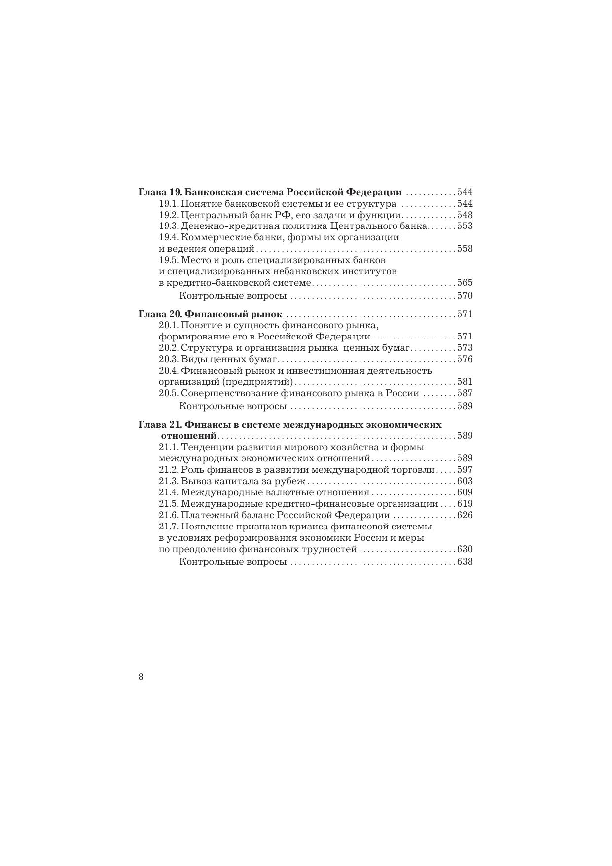 В учебнике изложена современная концепция финансов, денежного обращения и кредита. Рассматриваются финансовая система, использование финансов, особенности финансов коммерческих и некоммерческих организаций, государственные и муниципальные финансы, кредитно-банковская система России, международные финансы и другие вопросы, предусмотренные государственными образовательными стандартами высшего профессионального образования по специальностям "Коммерция", "Маркетинг", "Экономика и управление на предприятии", "Финансы и кредит", "Менеджмент организации". Для студентов бакалавриата и специалитета, а также для всех интересующихся вопросами финансов, денежного обращения и кредита.