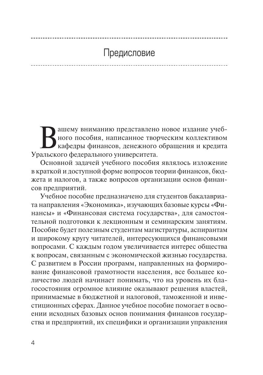 Пособие подготовлено авторским коллективом в составе Н. А. Исаковой (гл. 1–3, 5–9), Ю. А. Долгих (гл. 10), А. Г. Лачихиной (гл. 4). В пособии представлен комплексный подход к исследованию экономической сущности финансов, системы финансов, управления финансами, финансового механизма в рамках движения денежных потоков. Рассматривается современный взгляд на финансовую политику государства.