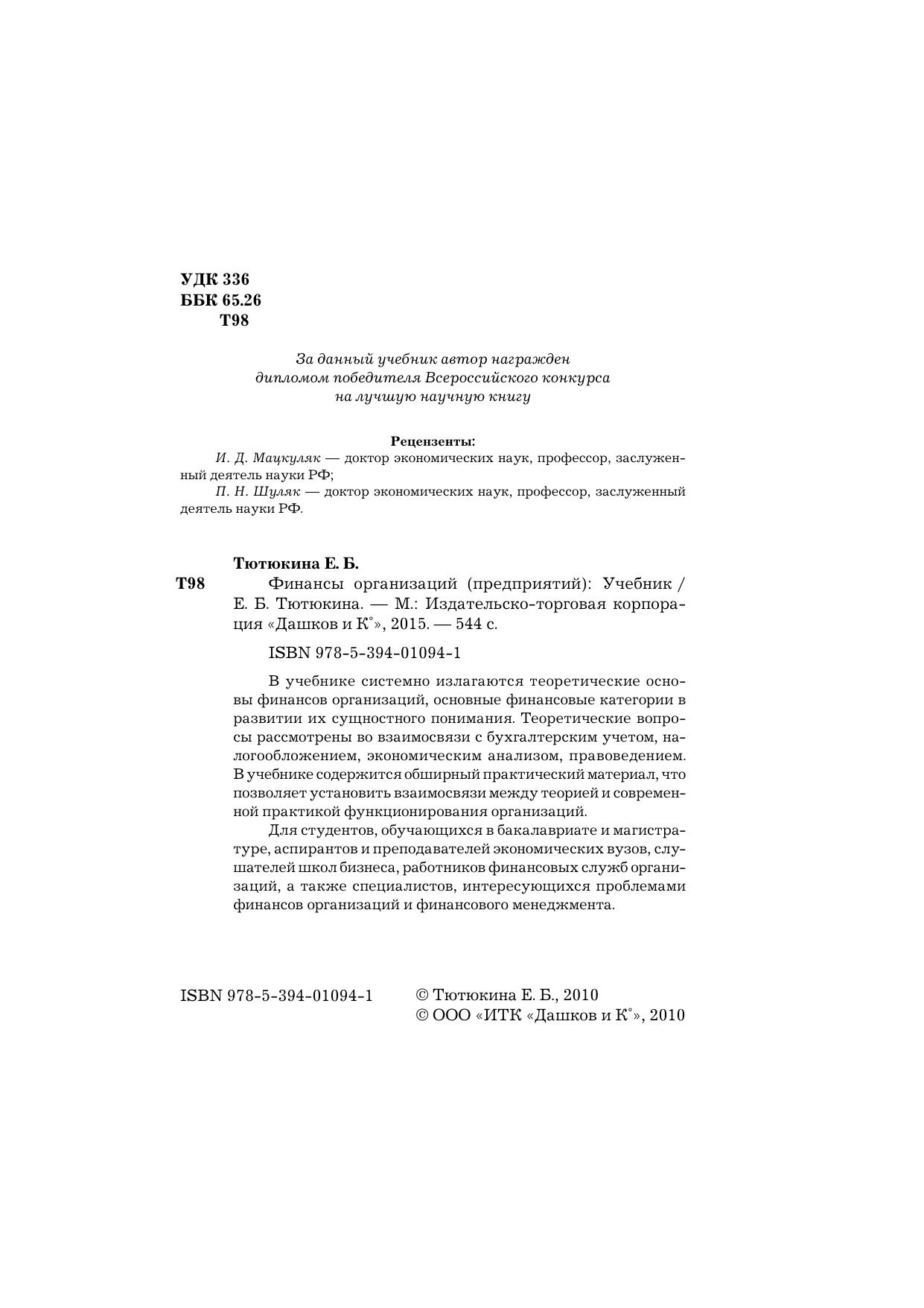 В учебнике системно излагаются теоретические основы финансов организаций, основные финансовые категории в развитии их сущностного понимания. Теоретические вопросы рассмотрены во взаимосвязи с бухгалтерским учетом, налогообложением, экономическим анализом, правоведением. В учебнике содержится обширный практический материал, что позволяет установить взаимосвязи между теорией и современной практикой функционирования организаций. Для студентов, обучающихся в бакалавриате и магистратуре, аспирантов и преподавателей экономических вузов, слушателей школ бизнеса, работников финансовых служб организаций, а также специалистов, интересующихся проблемами финансов организаций и финансового менеджмента.