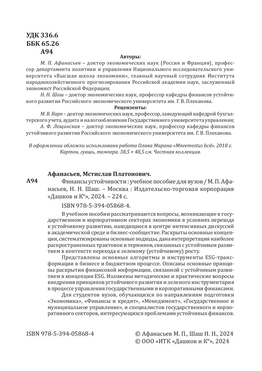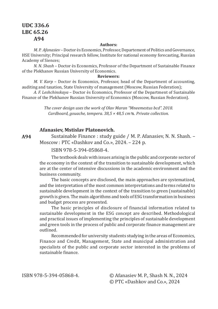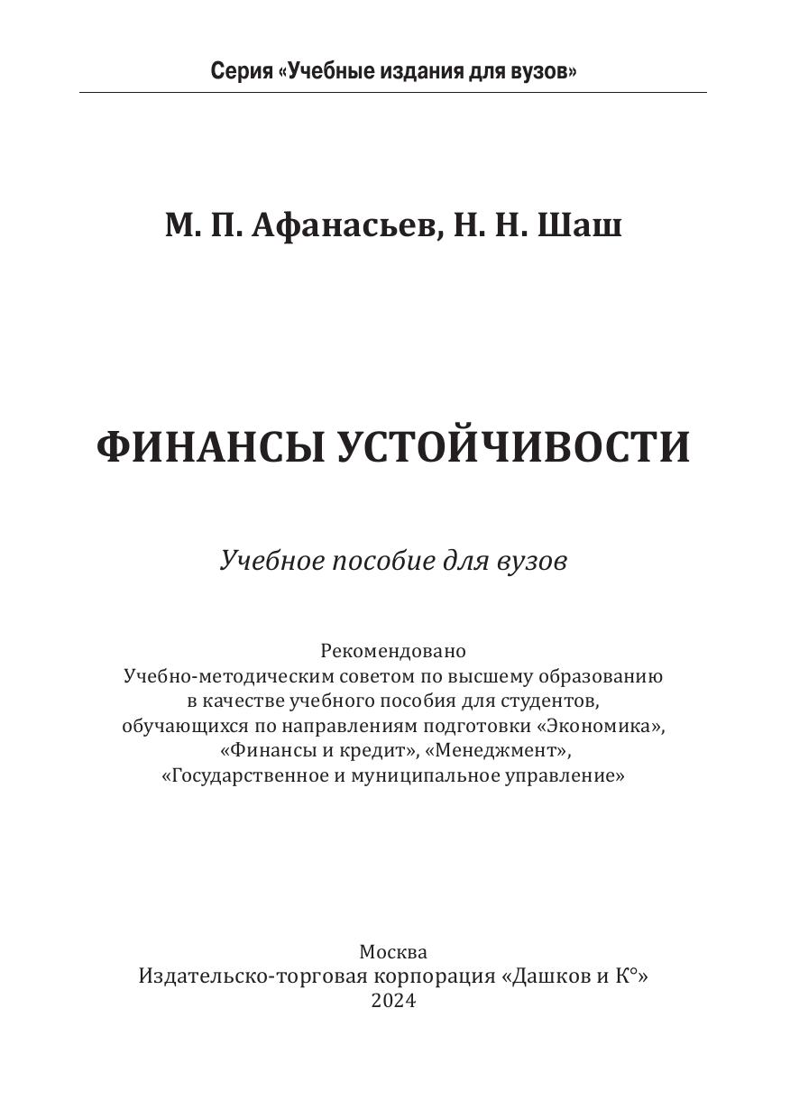 Рекомендовано для студентов, обучающихся на программах бакалавриата и магистратуры по направлениям подготовки 38.03.01 Экономика, 38.04.08 Финансы и кредит, 38.03.02 Менеджмент, 38.03.04 Государственное и муниципальное управление и специалистов государственного и корпоративного сектора, интересующимся проблемами устойчивых финансов.